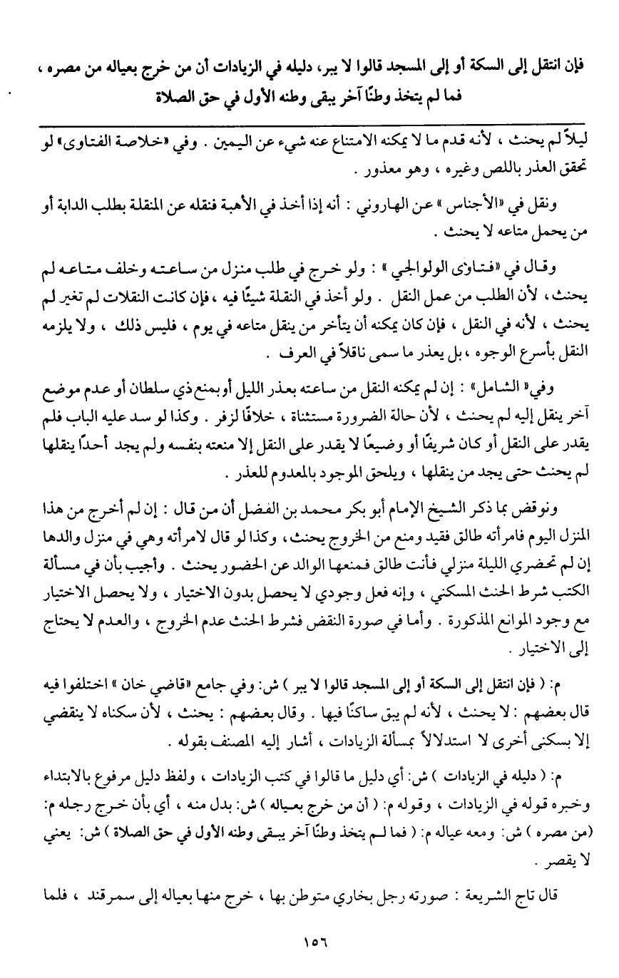 فإن انتقل إلى السكة أو إلى المسجد قالوا لا يبر، دليله في الزيادات أن من خرج بعياله من مصره، فما لم يتخذ وطنا آخر يبقى وطنه الأول في حق الصلاة