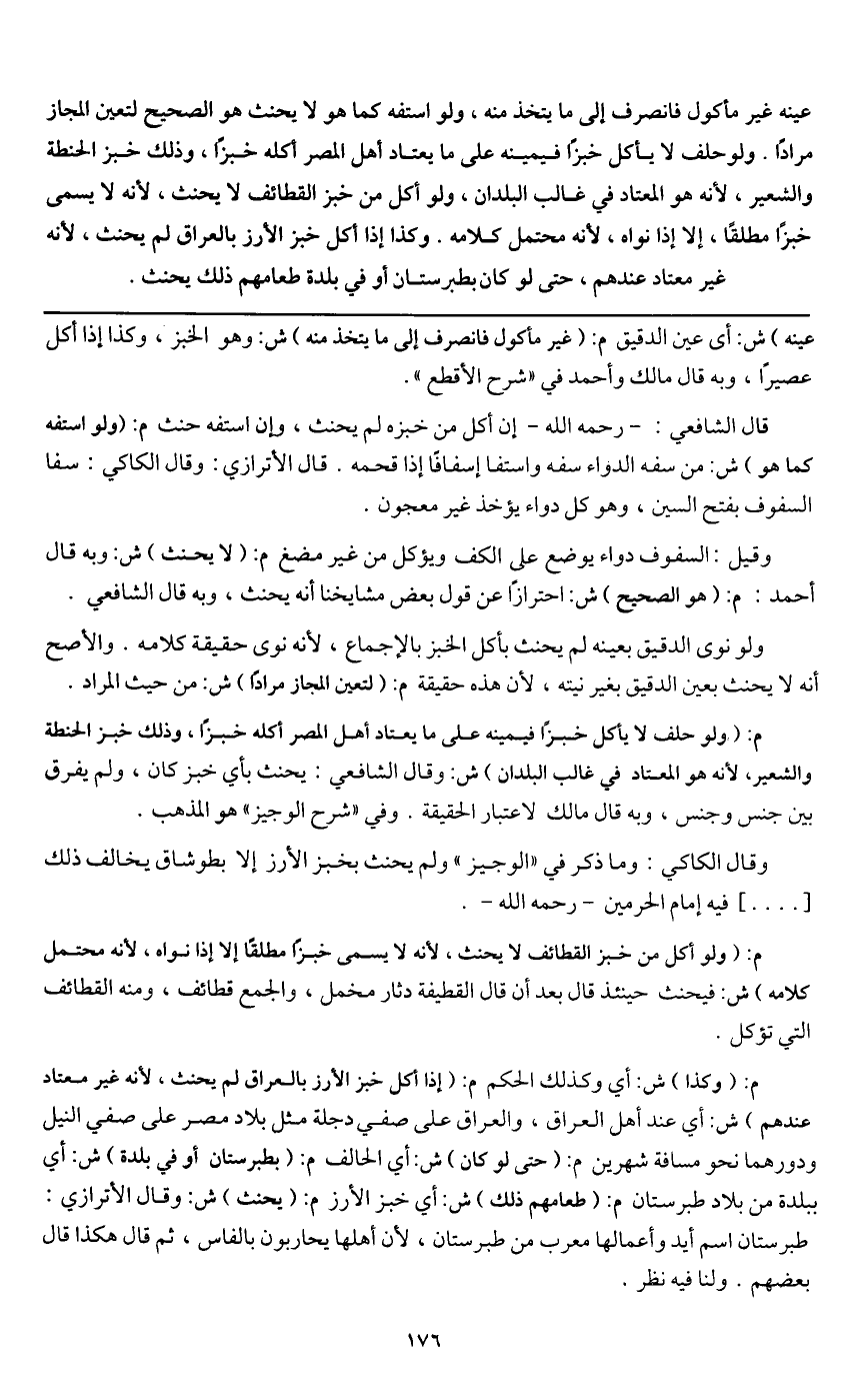 وقال الكاكي: وما ذكر في " الوجيز " ولم يحنث بخبز الأرز إلا بطوشاق يخالف ذلك [.....] فيه إمام الحرمين - رَحِمَهُ اللَّهُ -.
