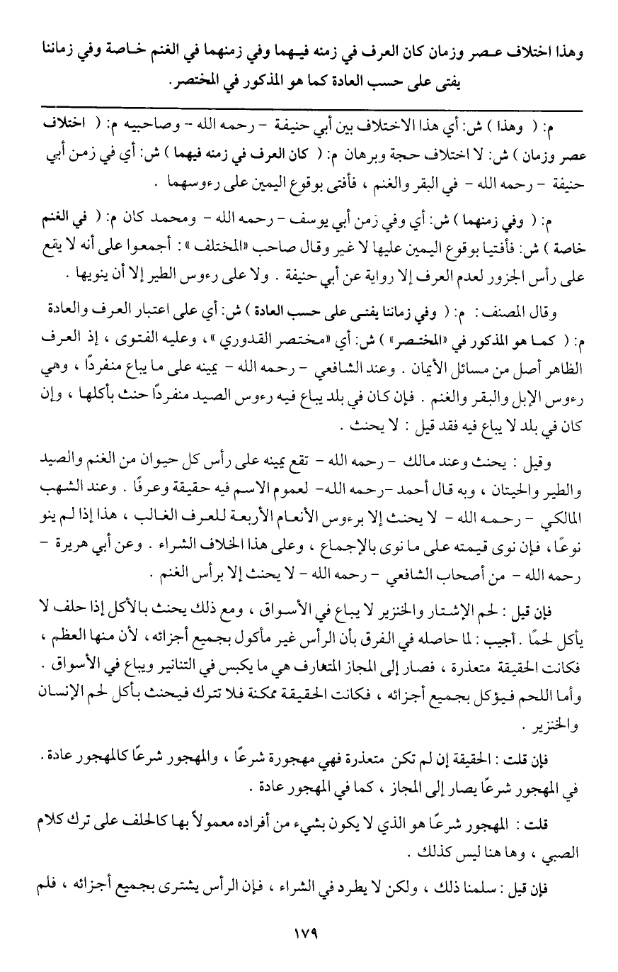 ـــــــــــــــــــــــــــــQم: (وهذا) ش: أي هذا الاختلاف بين أبي حنيفة - رَحِمَهُ اللَّهُ - وصاحبيه م: (اختلاف عصر وزمان) ش: لا اختلاف حجة وبرهان م: (كان العرف في زمنه فيهما) ش: أي في زمن أبي حنيفة - رَحِمَهُ اللَّهُ - في البقر والغنم، فأفتى بوقوع اليمين على رءوسهما.