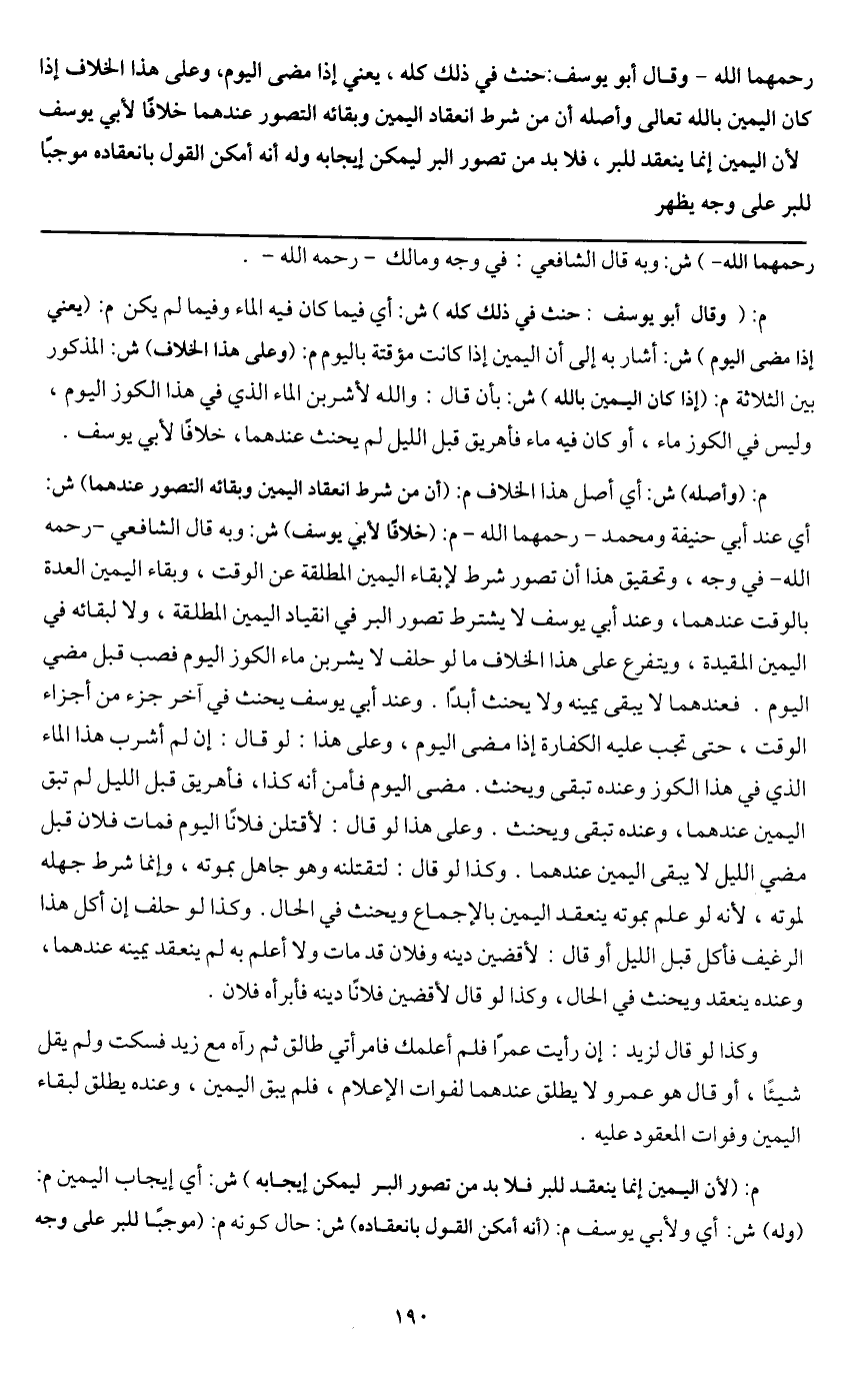 رحمهما الله - وقال أبو يوسف: حنث في ذلك كله، يعني إذا مضى اليوم، وعلى هذا الخلاف إذا كان اليمين بالله تعالى وأصله أن من شرط انعقاد اليمين وبقائه التصور عندهما خلافًا لأبي يوسف لأن اليمين إنما ينعقد للبر، فلا بد من تصور البر ليمكن إيجابه وله أنه أمكن القول بانعقاده موجبًا للبر على وجه يظهر