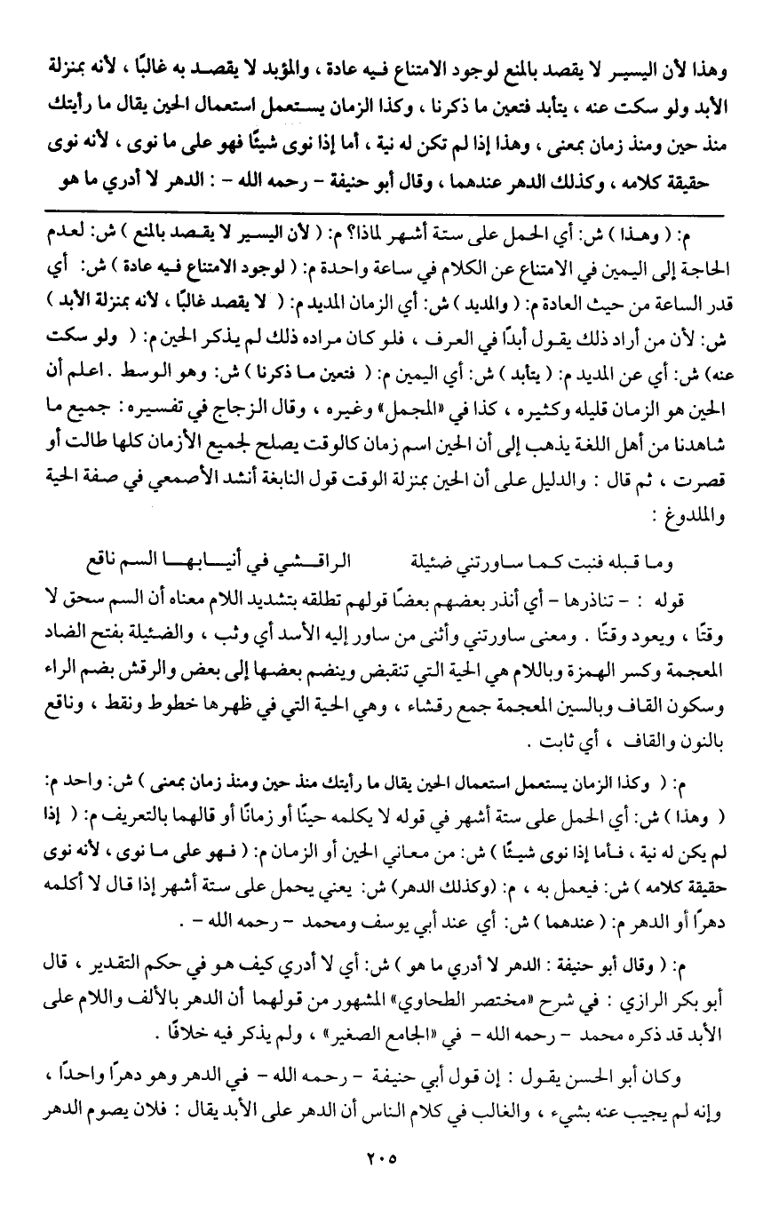 م: (وقال أبو حنيفة: الدهر لا أدري ما هو) ش: أي لا أدري كيف هو في حكم التقدير، قال أبو بكر الرازي: في شرح " مختصر الطحاوي " المشهور من قولهما أن الدهر بالألف واللام على الأبد قد ذكره محمد - رَحِمَهُ اللَّهُ - في " الجامع الصغير "، ولم يذكر فيه خلافًا.