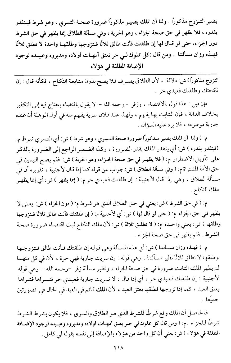 فالحاصل أن الملك وقع شرطًا للشرط الذي هو الطلاق والسرى، فلا يكون بشرط الشرط شرطًا للجزاء.