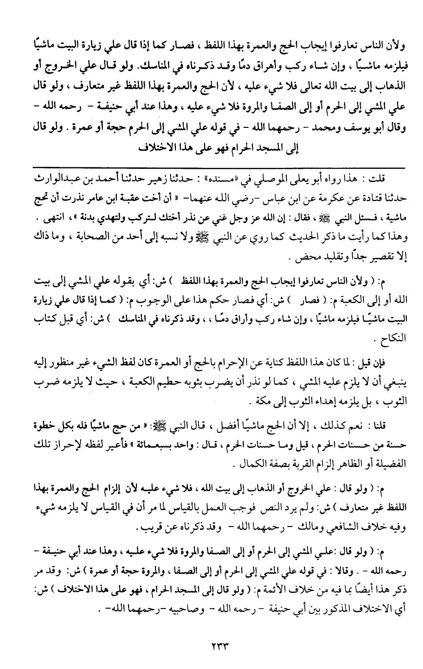 قلنا: نعم كذلك، إلا أن الحج ماشيًا أفضل، قال النبي - صَلَّى اللَّهُ عَلَيْهِ وَسَلَّمَ -: «من حج ماشيًا فله بكل خطوة حسنة من حسنات الحرم، قيل وما حسنات الحرم، قال: واحد بسبعمائة» فأعير لفظه لإحراز تلك الفضيلة أو الظاهر إلزام القربة بصفة الكمال.