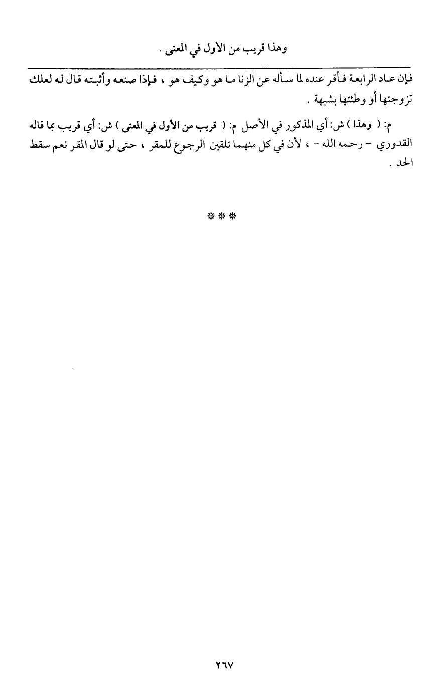ـــــــــــــــــــــــــــــQفإن عاد الرابعة فأقر عنده لما سأله عن الزنا ما هو وكيف هو، فإذا صنعه وأثبته قال له لعلك تزوجتها أو وطئتها بشبهة.