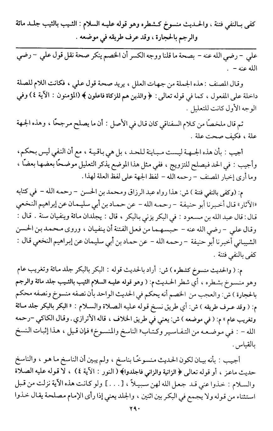 ـــــــــــــــــــــــــــــQعلي - رَضِيَ اللَّهُ عَنْهُ - بصحة ما قلنا ووجه الكسر أن الخصم ينكر صحة نقل قول علي - رَضِيَ اللَّهُ عَنْهُ -.