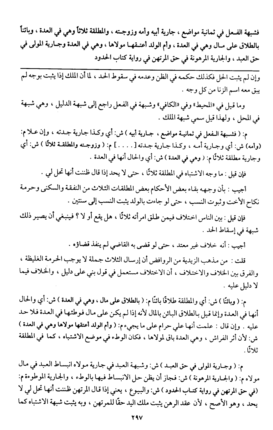 وما قيل في " المحيط " وفي " الكافي " وشبهة في الفعل راجع إلى شبهة الدليل، وهي شبهة في المحل، ولهذا قيل سمي شبهة الملك.