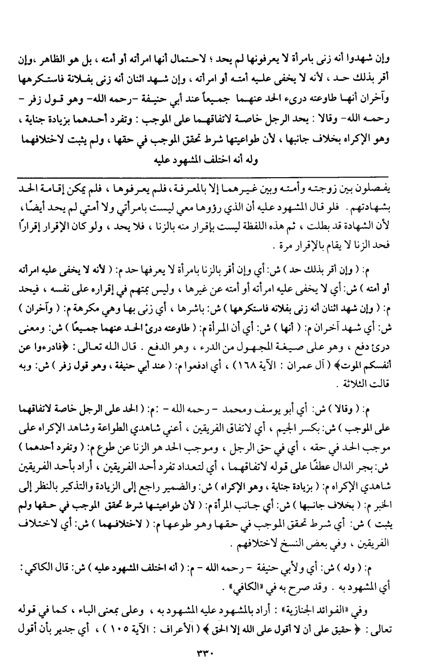 ـــــــــــــــــــــــــــــQيفصلون بين زوجته وأمته وبين غيرهما إلا بالمعرفة، فلم يعرفوها، فلم يمكن إقامة الحد بشهادتهم. فلو قال المشهود عليه أن الذي رأوها معي ليست بامرأتي ولا أمتي لم يحد أيضا، لأن الشهادة قد بطلت، ثم هذه اللفظة ليست بإقرار منه بالزنا، فلا يحد، ولو كان الإقرار إقرارا فحد الزنا لا يقام بالإقرار مرة.