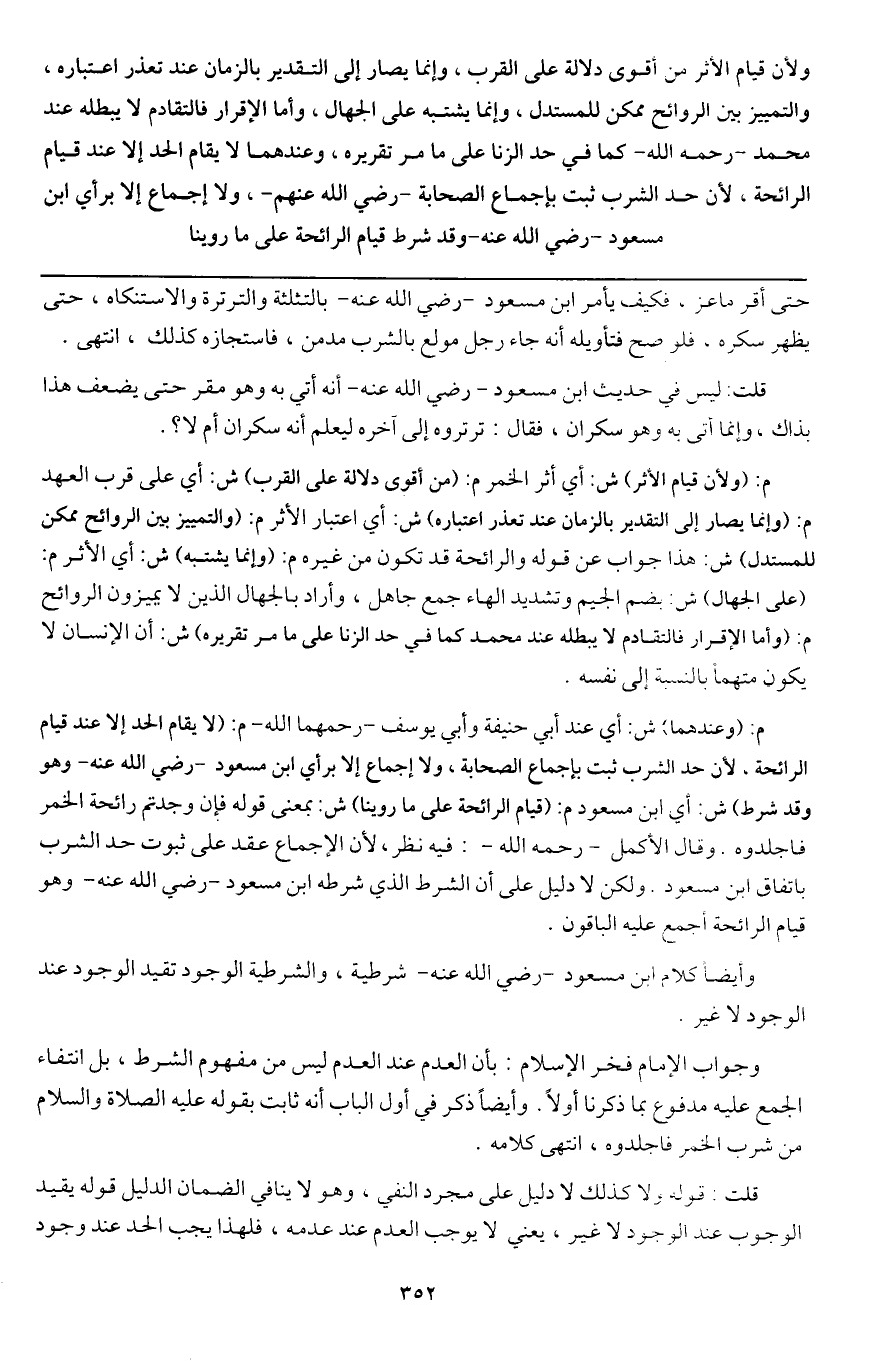 ـــــــــــــــــــــــــــــQحتى أقر ماعز، فكيف يأمر ابن مسعود - رَضِيَ اللَّهُ عَنْهُ - بالتثلثة والترترة والاستنكاه، حتى يظهر سكره، فلو صح فتأويله أنه جاء رجل مولع بالشرب مدمن، فاستجازه كذلك، انتهى.