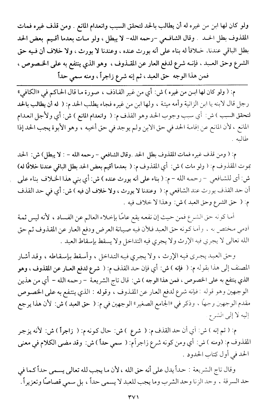 أما كونه حق الشرع فمن حيث إن نفعه يقع عاما بإخلاء العالم عن الفساد؛ لأنه ليس ثمة آدمي مختص به. وأما كونه حق العبد فلأن فيه صيانة العرض ودفع العار عن المقذوف ثم حق الله تعالى لا يجري فيه الإرث ولا يجري فيه التداخل ولا يسقط بإسقاط العبد.