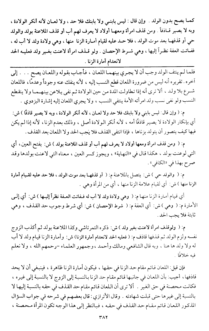 ومن قذف امرأة ومعها أولاد لا يعرف لهم أب أو قذف الملاعنة بولد والولد حي أو قذفها بعد موت الولد، فلا حد عليه لقيام أمارة الزنا منها، وهي ولادة ولد لا أب له، ففاتت العفة نظرا إليها، وهي شرط الإحصان. ولو قذف امرأة لاعنت بغير ولد فعليه الحد لانعدام أمارة الزنا.