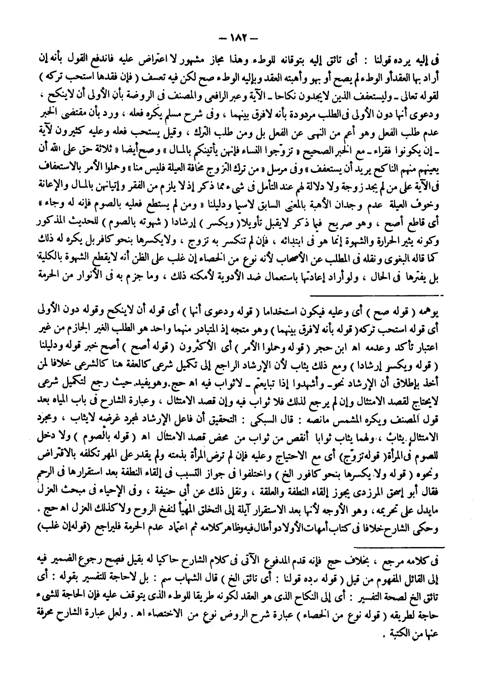 ـــــــــــــــــــــــــــــQفِي كَلَامِهِ مَرْجِعٌ، بِخِلَافِ حَجّ فَإِنَّهُ قَدَّمَ الْمَدْفُوعَ الْآتِيَ فِي كَلَامِ الشَّارِحِ حَاكِيًا لَهُ بِقِيلَ فَصَحَّ رُجُوعُ الضَّمِيرِ فِيهِ إلَى الْقَائِلِ الْمَفْهُومِ مِنْ قِيلَ (قَوْلُهُ: يَرُدُّهُ قَوْلُنَا: أَيْ تَائِقٌ إلَخْ) قَالَ الشِّهَابُ سم: بَلْ لَا حَاجَةَ لِلتَّفْسِيرِ بِقَوْلِهِ: أَيْ تَائِقٌ إلَخْ لِصِحَّةِ التَّفْسِيرِ: أَيْ إلَى النِّكَاحِ الَّذِي هُوَ الْعَقْدُ لِكَوْنِهِ طَرِيقًا لِلْوَطْءِ الَّذِي يَتَوَقَّفُ عَلَيْهِ فَإِنَّ الْحَاجَةَ لِلشَّيْءِ حَاجَةٌ لِطَرِيقِهِ (قَوْلُهُ: نَوْعٌ مِنْ الْخِصَاءِ) عِبَارَةُ شَرْحِ الرَّوْضِ نَوْعٌ مِنْ الِاخْتِصَاءِ. اهـ.