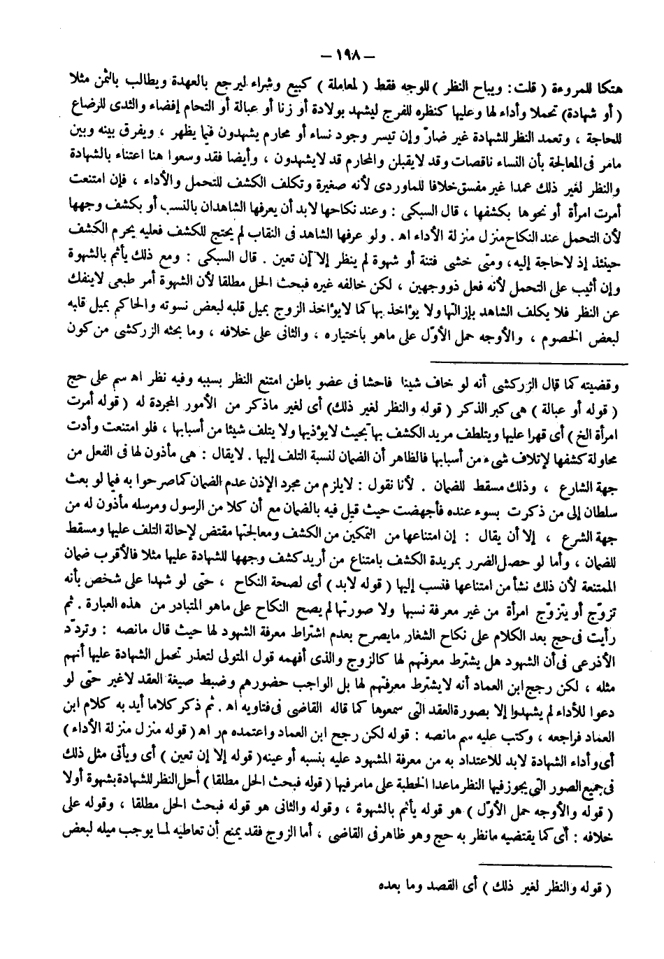قَالَ السُّبْكِيُّ: وَمَعَ ذَلِكَ يَأْثَمُ بِالشَّهْوَةِ وَإِنْ أُثِيبَ عَلَى التَّحَمُّلِ؛ لِأَنَّهُ فِعْلٌ ذُو وَجْهَيْنِ، لَكِنْ خَالَفَهُ غَيْرُهُ فَبَحَثَ الْحِلَّ مُطْلَقًا؛ لِأَنَّ الشَّهْوَةَ أَمْرٌ طَبَعِيٌّ لَا يَنْفَكُّ عَنْ النَّظَرِ فَلَا يُكَلَّفُ الشَّاهِدُ بِإِزَالَتِهَا وَلَا يُؤَاخَذُ بِهَا كَمَا لَا يُؤَاخَذُ الزَّوْجُ بِمَيْلِ قَلْبِهِ لِبَعْضِ نِسْوَتِهِ وَالْحَاكِمُ بِمَيْلِ قَلْبِهِ لِبَعْضِ الْخُصُومِ، وَالْأَوْجَهُ حَمْلُ الْأَوَّلِ عَلَى مَا هُوَ بِاخْتِيَارِهِ، وَالثَّانِي عَلَى خِلَافِهِ، وَمَا بَحَثَهُ الزَّرْكَشِيُّ مِنْ كَوْنِ
