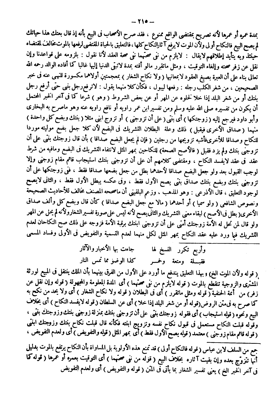 ـــــــــــــــــــــــــــــQجَمْعٍ مِنْ السَّلَفِ لِابْنِ عَبَّاسٍ (قَوْلُهُ: فَالنِّكَاحُ أَوْلَى) قَدْ تُمْنَعُ هَذِهِ الْأَوْلَوِيَّةُ بَلْ الْمُسَاوَاةُ بِأَنَّ النِّكَاحَ يَرْتَفِعُ بِالْمَوْتِ بِدَلِيلِ أَنَّهَا تَتَزَوَّجُ بَعْدَهُ وَإِنْ بَقِيَتْ آثَارُهُ بِخِلَافِ الْبَيْعِ (قَوْلُهُ: مِنْ نَفْيِ صِحَّتِهِمَا) أَيْ التَّوْقِيتِ بِعُمُرِهِ أَوْ عُمُرِهَا