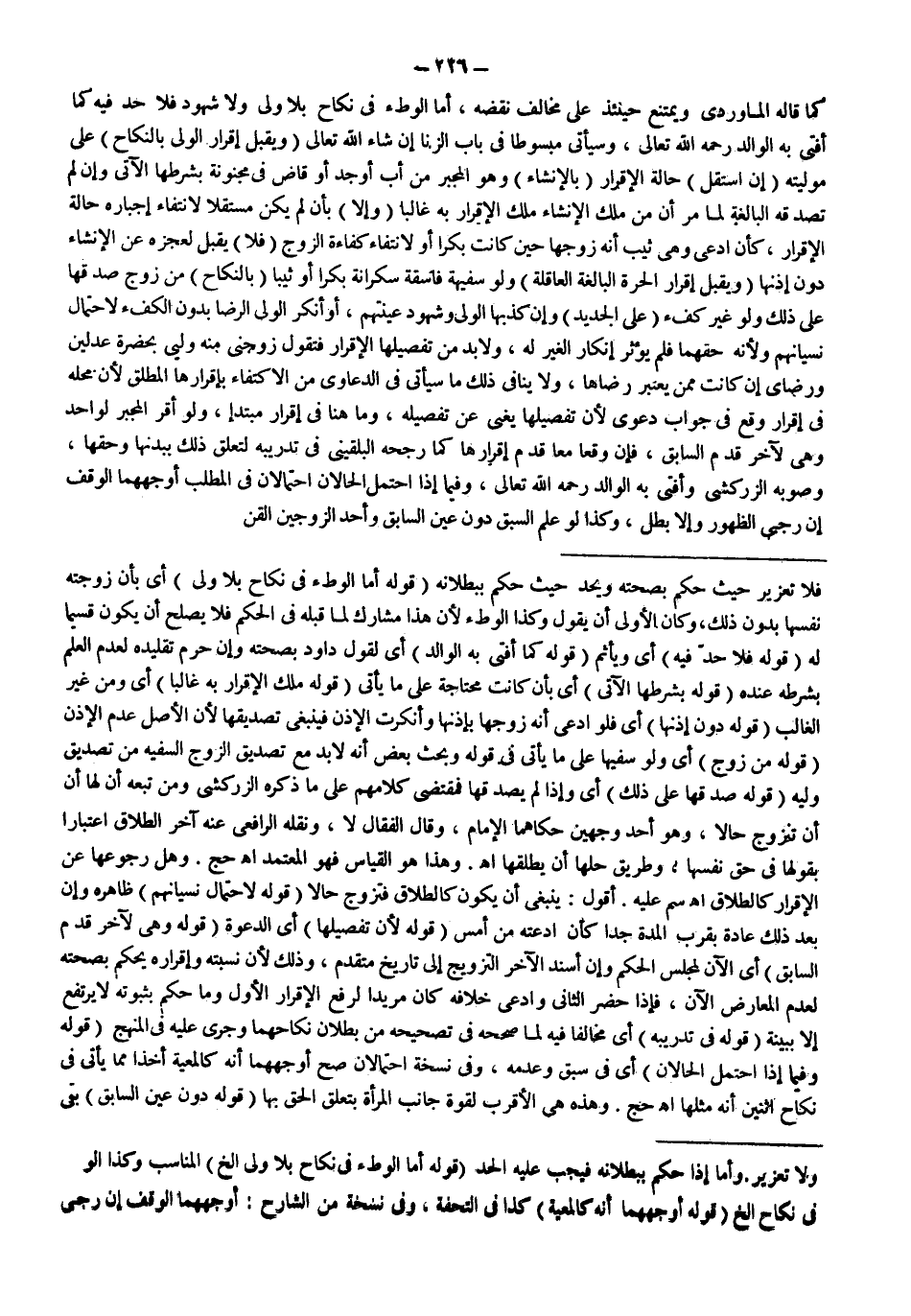 كَمَا قَالَهُ الْمَاوَرْدِيُّ وَيَمْتَنِعُ حِينَئِذٍ عَلَى مُخَالِفٍ نَقْضُهُ، أَمَّا الْوَطْءُ فِي نِكَاحٍ بِلَا وَلِيٍّ وَلَا شُهُودٍ فَلَا حَدَّ فِيهِ كَمَا أَفْتَى بِهِ الْوَالِدُ - رَحِمَهُ اللَّهُ تَعَالَى -، وَسَيَأْتِي مَبْسُوطًا فِي بَابِ الزِّنَا إنْ شَاءَ اللَّهُ تَعَالَى.