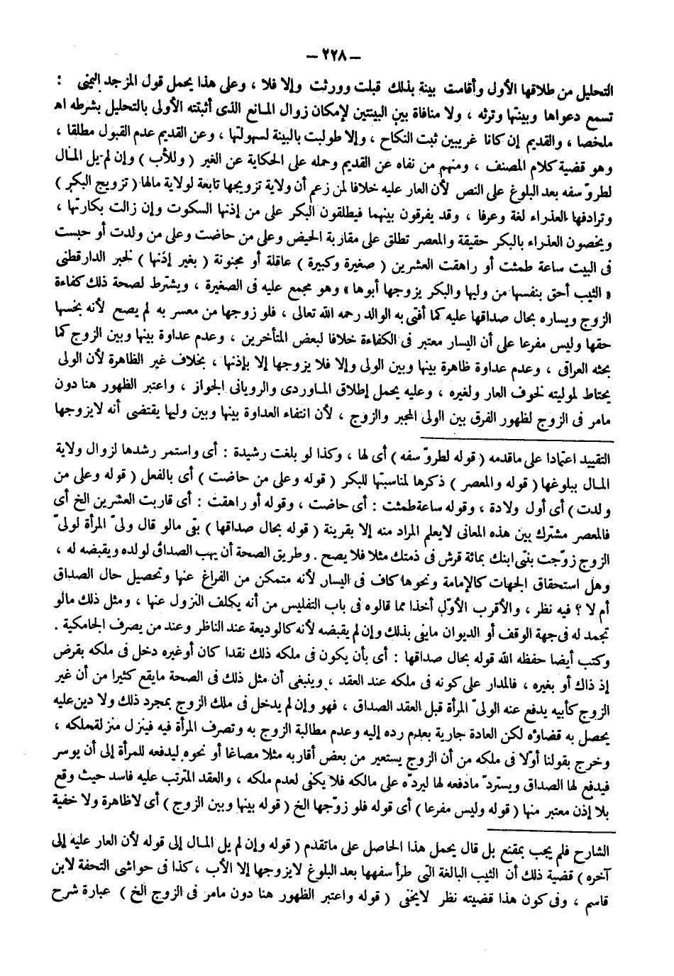 وَكَتَبَ أَيْضًا حَفِظَهُ اللَّهُ قَوْلُهُ بِحَالِ صَدَاقِهَا: أَيْ بِأَنْ يَكُونَ فِي مِلْكِهِ ذَلِكَ نَقْدًا كَانَ أَوْ غَيْرَهُ دَخَلَ فِي مِلْكِهِ بِقَرْضٍ إذْ ذَاكَ، أَوْ بِغَيْرِهِ، فَالْمَدَارُ عَلَى كَوْنِهِ فِي مِلْكِهِ عِنْدَ الْعَقْدِ، وَيَنْبَغِي أَنَّ مِثْلَ ذَلِكَ فِي الصِّحَّةِ مَا يَقَعُ كَثِيرًا مِنْ أَنَّ غَيْرَ الزَّوْجِ كَأَبِيهِ يَدْفَعُ عَنْهُ الْوَلِيُّ الْمَرْأَةُ قَبْلَ الْعَقْدِ الصَّدَاقَ، فَهُوَ وَإِنْ لَمْ يَدْخُلْ فِي مِلْكِ الزَّوْجِ بِمُجَرَّدِ ذَلِكَ وَلَا دَيْنَ عَلَيْهِ يَحْصُلُ بِهِ قَضَاؤُهُ لَكِنَّ الْعَادَةَ جَارِيَةٌ بِعَدَمِ رَدِّهِ إلَيْهِ وَعَدَمِ مُطَالَبَةِ الزَّوْجِ بِهِ وَتَصَرُّفِ الْمَرْأَةِ فِيهِ فَيُنَزَّلُ مَنْزِلَةَ مِلْكِهِ، وَخَرَجَ بِقَوْلِنَا أَوَّلًا فِي مِلْكِهِ مِنْ أَنَّ الزَّوْجَ يَسْتَعِيرُ مِنْ بَعْضِ أَقَارِبِهِ مَثَلًا مَصَاغًا، أَوْ نَحْوَهُ لِيَدْفَعَهُ لِلْمَرْأَةِ إلَى أَنْ يُوسِرَ فَيَدْفَعَ لَهَا الصَّدَاقَ وَيَسْتَرِدَّ مَا دَفَعَهُ لَهَا لِيَرُدَّهُ عَلَى مَالِكِهِ فَلَا يَكْفِي لِعَدَمِ مِلْكِهِ، وَالْعَقْدُ الْمُتَرَتِّبُ عَلَيْهِ فَاسِدٌ حَيْثُ وَقَعَ بِلَا إذْنٍ مُعْتَبَرٍ مِنْهَا (قَوْلُهُ: وَلَيْسَ مُفَرَّعًا) أَيْ قَوْلُهُ فَلَوْ زَوَّجَهَا إلَخْ (قَوْلُهُ: بَيْنَهَا وَبَيْنَ الزَّوْجِ) أَيْ لَا ظَاهِرَةٌ وَلَا خَفِيَّةٌ