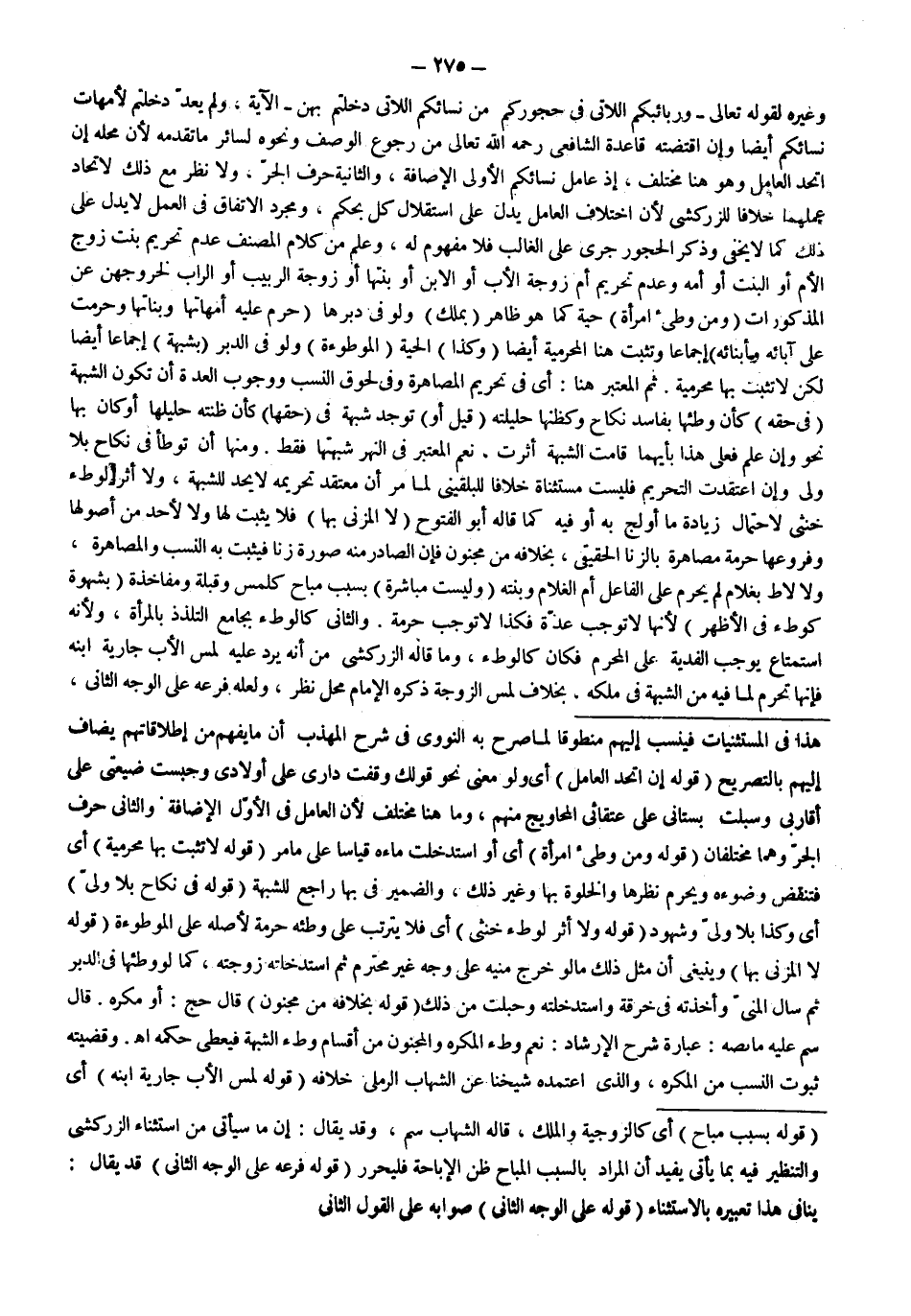وَغَيْرُهُ لِقَوْلِهِ تَعَالَى {وَرَبَائِبُكُمُ اللاتِي فِي حُجُورِكُمْ مِنْ نِسَائِكُمُ اللاتِي دَخَلْتُمْ بِهِنَّ} [النساء: 23] الْآيَةَ، وَلَمْ يُعِدْ دَخَلْتُمْ لِأُمَّهَاتِ نِسَائِكُمْ أَيْضًا وَإِنْ اقْتَضَتْهُ قَاعِدَةُ الشَّافِعِيِّ - رَحِمَهُ اللَّهُ تَعَالَى - مِنْ رُجُوعِ الْوَصْفِ وَنَحْوِهِ لِسَائِرِ مَا تَقَدَّمَهُ لِأَنَّ مَحَلَّهُ إنْ اتَّحَدَ الْعَامِلُ وَهُوَ هُنَا مُخْتَلِفٌ، إذْ عَامِلُ نِسَائِكُمْ الْأُولَى الْإِضَافَةُ، وَالثَّانِيَة حَرْفُ الْجَرِّ، وَلَا نَظَرَ مَعَ ذَلِكَ لِاتِّحَادِ عَمَلِهِمَا خِلَافًا لِلزَّرْكَشِيِّ لِأَنَّ اخْتِلَافَ الْعَامِلِ يَدُلُّ عَلَى اسْتِقْلَالِ كُلٍّ بِحُكْمٍ، وَمُجَرَّدُ الِاتِّفَاقِ فِي الْعَمَلِ لَا يَدُلُّ عَلَى ذَلِكَ كَمَا لَا يَخْفَى وَذِكْرُ الْحُجُورِ جَرَى عَلَى الْغَالِبِ فَلَا مَفْهُومَ لَهُ، وَعُلِمَ مِنْ كَلَامِ الْمُصَنِّفِ عَدَمُ تَحْرِيمِ بِنْتِ زَوْجِ الْأُمِّ، أَوْ الْبِنْتِ، أَوْ أُمِّهِ وَعَدَمِ تَحْرِيمِ أُمِّ زَوْجَةِ الْأَبِ، أَوْ الِابْنِ، أَوْ بِنْتِهَا، أَوْ زَوْجَةِ الرَّبِيبِ أَوْ الرَّابِّ لِخُرُوجِهِنَّ عَنْ الْمَذْكُورَاتِ.