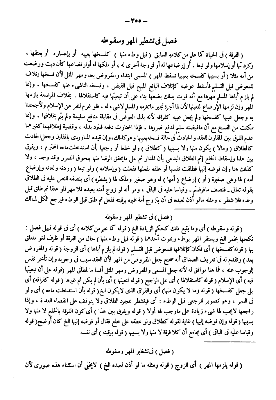 فَصْلٌ فِي تَشْطِيرِ الْمَهْرِ وَسُقُوطِهِ (الْفُرْقَةُ) فِي الْحَيَاةِ كَمَا عُلِمَ مِنْ كَلَامِهِ السَّابِقِ