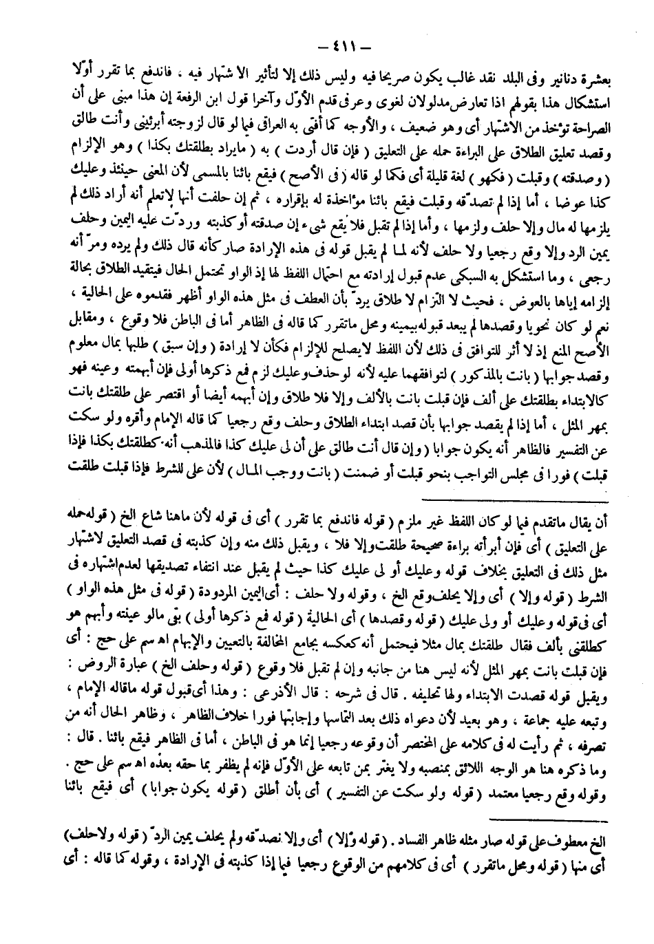 بِعَشَرَةِ دَنَانِيرَ. وَفِي الْبَلَدِ نَقْدٌ غَالِبٌ يَكُونُ صَرِيحًا فِيهِ وَلَيْسَ ذَلِكَ إلَّا لِتَأْثِيرِ الِاشْتِهَارِ فِيهِ، فَانْدَفَعَ بِمَا تَقَرَّرَ أَوَّلًا اسْتِشْكَالُ هَذَا بِقَوْلِهِمْ إذَا تَعَارَضَ مَدْلُولَانِ لُغَوِيٌّ وَعُرْفِيٌّ قُدِّمَ الْأَوَّلُ، وَآخِرًا قَوْلُ ابْنِ الرِّفْعَةِ: إنَّ هَذَا مَبْنِيٌّ عَلَى أَنَّ الصَّرَاحَةَ تُؤْخَذُ مِنْ الِاشْتِهَارِ أَيْ وَهُوَ ضَعِيفٌ، وَالْأَوْجَهُ كَمَا أَفْتَى بِهِ الْعِرَاقِيُّ فِيمَا لَوْ قَالَ لِزَوْجَتِهِ أَبْرِئِينِي وَأَنْت طَالِقٌ وَقَصَدَ تَعْلِيقَ الطَّلَاقِ عَلَى الْبَرَاءَةِ حَمَلَهُ عَلَى التَّعْلِيقِ (فَإِنْ قَالَ أَرَدْت) بِهِ (مَا يُرَادُ بِ طَلَّقْتُك بِكَذَا) وَهُوَ الْإِلْزَامُ (وَصَدَّقَتْهُ) وَقَبِلَتْ (فَكَهُوَ) لُغَةٌ قَلِيلَةٌ أَيْ فَكَمَا لَوْ قَالَهُ (فِي الْأَصَحِّ) فَيَقَعُ بَائِنًا بِالْمُسَمَّى لِأَنَّ الْمَعْنَى حِينَئِذٍ وَعَلَيْك كَذَا عِوَضًا، أَمَّا إذَا لَمْ تُصَدِّقْهُ وَقَبِلَتْ فَيَقَعُ بَائِنًا مُؤَاخَذَةً لَهُ بِإِقْرَارِهِ، ثُمَّ إنْ حَلَفَتْ أَنَّهَا لَا تَعْلَمُ أَنَّهُ أَرَادَ ذَلِكَ لَمْ يَلْزَمْهَا لَهُ مَالٌ وَإِلَّا حَلَفَ وَلَزِمَهَا، وَأَمَّا إذَا لَمْ تَقْبَلْ فَلَا يَقَعُ شَيْءٌ إنْ صَدَّقَتْهُ أَوْ كَذَّبَتْهُ وَرَدَّتْ عَلَيْهِ الْيَمِينَ وَحَلَفَ يَمِينَ الرَّدِّ وَإِلَّا وَقَعَ رَجْعِيًّا وَلَا حَلِفَ لِأَنَّهُ لَمَّا لَمْ يُقْبَلْ قَوْلُهُ فِي هَذِهِ الْإِرَادَةِ صَارَ كَأَنَّهُ قَالَ ذَلِكَ وَلَمْ يُرِدْهُ وَمَرَّ أَنَّهُ رَجْعِيٌّ، وَمَا اسْتَشْكَلَ بِهِ السُّبْكِيُّ عَدَمُ قَبُولِ إرَادَتِهِ مَعَ احْتِمَالِ اللَّفْظِ لَهَا إذْ الْوَاوُ تَحْتَمِلُ الْحَالَ فَيَتَقَيَّدُ الطَّلَاقُ بِحَالَةِ إلْزَامِهِ إيَّاهَا بِالْعِوَضِ، فَحَيْثُ لَا الْتِزَامَ لَا طَلَاقَ يُرَدُّ بِأَنَّ الْعَطْفَ فِي مِثْلِ هَذِهِ الْوَاوِ أَظْهَرُ فَقَدَّمُوهُ عَلَى الْحَالِيَّةِ، نَعَمْ لَوْ كَانَ نَحْوِيًّا وَقَصَدَهَا لَمْ يَبْعُدْ قَبُولُهُ بِيَمِينِهِ وَمَحَلُّ مَا تَقَرَّرَ كَمَا قَالَهُ فِي الظَّاهِرِ أَمَّا فِي الْبَاطِنِ فَلَا وُقُوعَ، وَمُقَابِلُ الْأَصَحِّ الْمَنْعُ إذْ لَا أَثَرَ لِلتَّوَافُقِ فِي ذَلِكَ لِأَنَّ اللَّفْظَ لَا يَصْلُحُ لِلْإِلْزَامِ فَكَأَنْ لَا إرَادَةَ (وَإِنْ سَبَقَ) طَلَبَهَا بِمَالٍ مَعْلُومٍ وَقَصَدَ جَوَابَهَا (بَانَتْ بِالْمَذْكُورِ) لِتَوَافُقِهِمَا عَلَيْهِ لِأَنَّهُ لَوْ حَذَفَ وَعَلَيْك لَزِمَ فَمَعَ ذِكْرِهَا أَوْلَى فَإِنْ أَبْهَمَتْهُ وَعَيَّنَهُ فَهُوَ كَالِابْتِدَاءِ بِ طَلَّقْتُك عَلَى أَلْفٍ فَإِنْ قَبِلَتْ بَانَتْ بِالْأَلْفِ وَإِلَّا فَلَا طَلَاقَ وَإِنْ أَبْهَمَهُ أَيْضًا أَوْ اقْتَصَرَ عَلَى طَلَّقْتُك بَانَتْ بِمَهْرِ الْمِثْلِ، أَمَّا إذَا لَمْ يَقْصِدْ جَوَابَهَا بِأَنْ قَصَدَ ابْتِدَاءَ الطَّلَاقِ وَحَلَفَ وَقَعَ رَجْعِيًّا كَمَا قَالَهُ الْإِمَامُ وَأَقَرَّهُ وَلَوْ سَكَتَ عَنْ التَّفْسِيرِ فَالظَّاهِرُ أَنَّهُ يَكُونُ جَوَابًا
