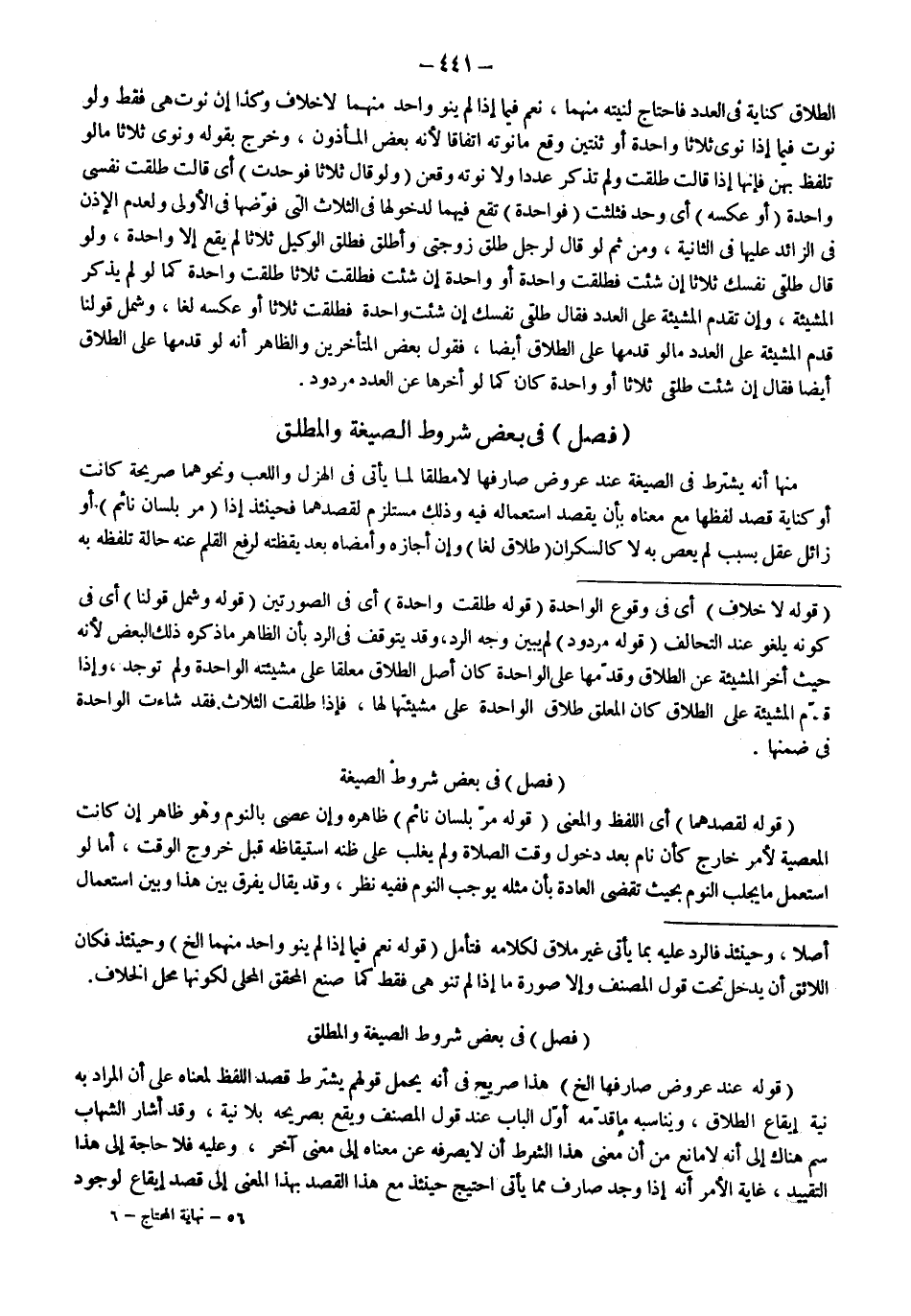 (فَصْلٌ) فِي بَعْضِ شُرُوطِ الصِّيغَةِ وَالْمُطْلَقِ