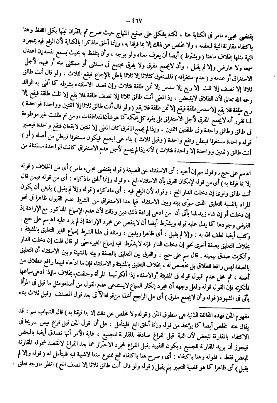 ـــــــــــــــــــــــــــــQمَفْهُومُ الْمَتْنِ فَهْده الْمُخَالَفَةُ الثَّانِيَةُ هِيَ مَنْطُوقُ الْمَتْنِ (قَوْلُهُ: وَلَا مُخَلِّصَ عَنْ ذَلِكَ إلَّا بِمَا فَرَّقْنَا بِهِ) قَالَ الشِّهَابُ سم: قَدْ يُقَالُ عَنْهُ مُخَلِّصٌ أَيْضًا كَمَا يُؤْخَذُ مِنْ قَوْلِهِ وَإِنَّمَا أُلْحِقَ إلَخْ فَلْيُتَأَمَّلْ، عَلَى أَنَّ قَوْلَ الْمَتْنِ قَبْلَ فَرَاغٍ لَيْسَ صَرِيحًا فِي الِاكْتِفَاءِ بِالْمُقَارَنَةِ لِلْبَعْضِ؛ لِأَنَّ النِّيَّةَ قَبْلَ الْفَرَاغِ صَادِقَةٌ بِالْمُقَارَنَةِ لِلْجَمِيعِ، غَايَةُ الْأَمْرِ أَنَّهَا تَصْدُقُ أَيْضًا بِالْبَعْضِ فَيَجُوزُ أَنْ يُرِيدَ الْمُقَارَنَةَ لِلْجَمِيعِ وَيَكُونُ التَّقْيِيدُ بِقَبْلِ الْفَرَاغِ لِمُجَرَّدِ الِاحْتِرَازِ عَمَّا بَعْدَ الْفَرَاغِ لَا لِقَصْدِ شُمُولِهِ الْمُقَارَنَةَ لِلْبَعْضِ فَقَطْ، فَقَوْلُهُ وَهُنَا بِاكْتِفَاءٍ: أَيْ وَصَرَّحَ هُنَا بِاكْتِفَاءٍ إلَخْ مَمْنُوعٌ مَنْعًا لَا شُبْهَةَ فِيهِ فَلْيُتَأَمَّلْ. اهـ. (قَوْلُهُ: وَإِلَّا لَمْ يُقْبَلْ) أَيْ ظَاهِرًا كَمَا هُوَ قَضِيَّةُ التَّعْبِيرِ بِلَمْ يُقْبَلْ (قَوْلُهُ: وَلَوْ قَالَ أَنْتِ طَالِقٌ ثَلَاثًا إلَّا نِصْفَ إلَخْ) اُنْظُرْ مَا وَجْهُ تَعَلُّقِ