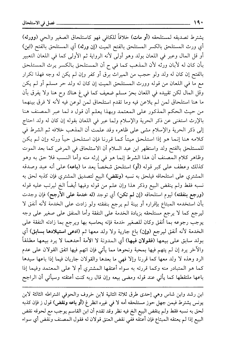 يشترط تصديقه لمستلحقه (أو مات) خلافًا للكافي فهو كاستلحاق الصغير والحي (وورثه) أي ورث المستلحق بالكسر المستلحق بالفتح الميت (إن ورثه) أي المستلحق بالفتح (ابن) أو قل المال وعبر في اللعان بولد وهو أولى لأنه الرواية ثم الأولى كما في اللعان التعبير بأن كان له لأبان ورثه لأن المذهب كما في ح أن المستلحق بالكسر يرث المستلحق بالفتح إن كان له ولد ولو حجب من الميراث برق أو كفر وإن لم يكن له وجه فهذا تكرار مع ما في اللعان من قوله وورث المستلحق الميت إن كان له ولد حر مسلم أو لم يكن وقل المال لكن تقييده في اللعان بحرّ مسلم ضعيف كما في غ هناك وح هنا ولا يفرق بأن ما هنا استلحاق لمن لم يلاعن فيه وما تقدم استلحاق لمن لوعن فيه لأنه لا فرق بينهما من حيث الحكم المذكور على المعتمد وبهذا يعلم أن قول د لما عبر المصنف هنا بالإرث استغنى عن ذكر الحرية والإِسلام ولما عبر في اللعان بقوله إن كان له ولد احتاج إلى ذكر الحرية والإِسلام مشى على ظاهره وقد علمت أن المذهب خلافه ثم الشرط في كلامه هنا إنما هو إذا استلحق ميتًا كما قررنا فإن استلحق حيًّا ورثه وإن لم يكن للمستلحق بالفتح ولد واستظهر ابن عبد السلام أن الاستلحاق في المرض كما بعد الموت وظاهر كلام المصنف أن هذا الشرط إنما هو في إرثه منه وأما النسب فلا حق به وهو كذلك وعطف على كبر قوله (أو) استلحق شخصًا يعد ما (باعه) على أنه عبد وصدقه المشتري على استلحاقه فيلحق به نسبه (ونقض) البيع لتصديق المشتري فإن كذبه لحق به نسبه فقط ولم ينقض البيع وذكر هذا وإن علم من قوله وفيها أيضًا الخ ليرتب عليه قوله (ورجع بنفقته) ليوم استلحاقه (إن لم تكن) أي توجد (له خدمة على الأرجح) فإن وجدت بأن استخدمه المبتاع بإقراره أو بينة لم يرجع بنفقته ولو زادت على الخدمة لأنه أنفق لا ليرجع كما لا يرجع مستلحقه بزيادة الخدمة على النفقة وأما المنفق على صغير على وجه يوجب رجوعه بما أنفق وكان للصغير خدمة فإنه يحاسبه بها ويرجع بما زادته النفقة على الخدمة لأنه أنفق ليرجع (وإن) باع جارية ولا ولد معها ثم (ادعى استيلادها بسابق) أي بولد سابق على بيعها (فقولان فيها) أي المدونة لا الأمة أحدهما لا يرد بيعها مطلقًا والآخر يرد إن لم يتهم فيها بمحبة ونحوها مما يأتي فإن اتهم فيها اتفق القولان على عدم الرد وهذه لا ولد معها كما قررنا وإلا فهي ما بعدها والقولان جاريان فيما إذا باعها سيدها كما هو المتبادر منه وكما قررته به سواء أعتقها المشتري أم لا على المعتمد وفيما إذا باعها ملتقطها كما يأتي عند قوله ومضى بيعه وإن قال ربه كنت أعتقته وسيأتي أن الراجح