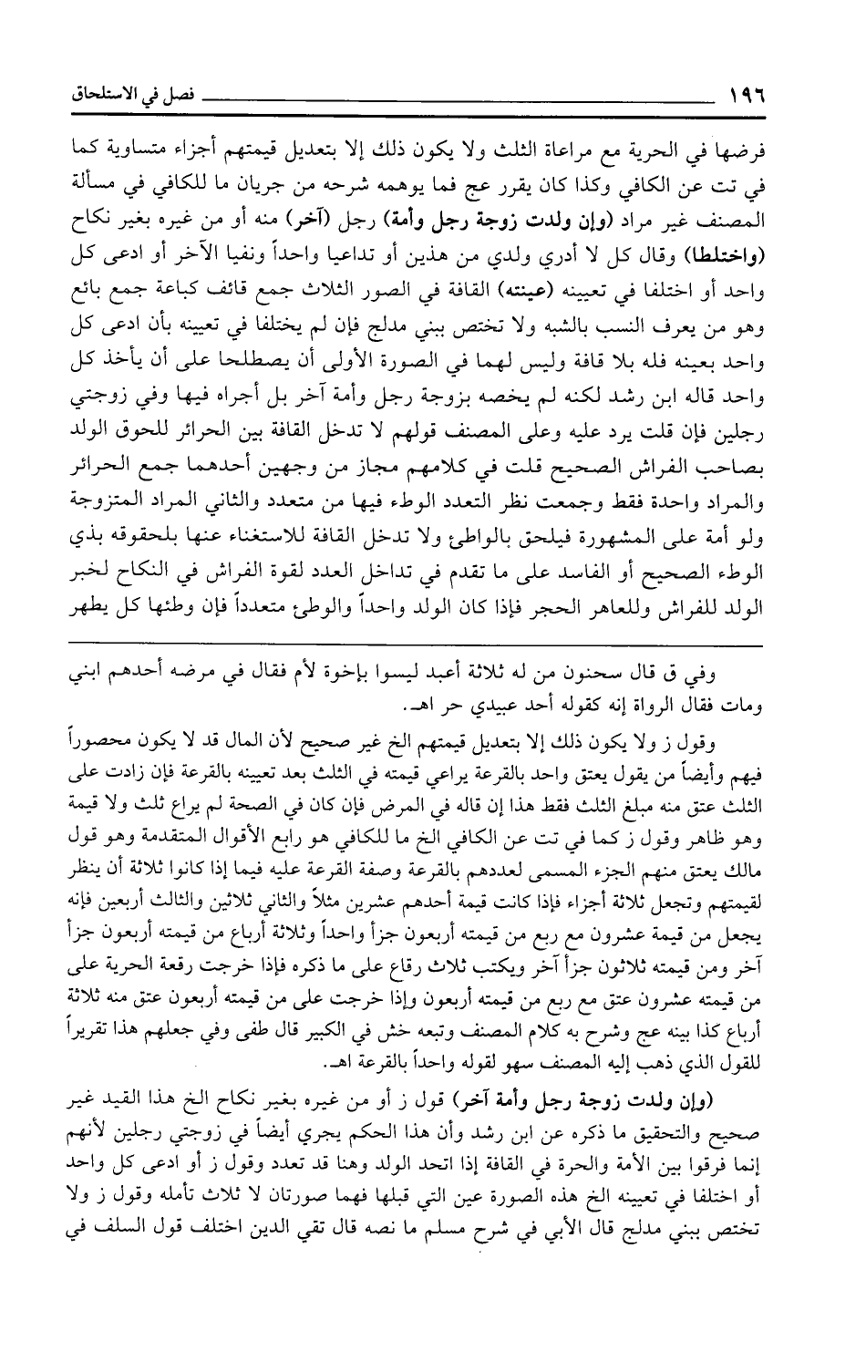 فرضها في الحرية مع مراعاة الثلث ولا يكون ذلك إلا بتعديل قيمتهم أجزاء متساوية كما في تت عن الكافي وكذا كان يقرر عج فما يوهمه شرحه من جريان ما للكافي في مسألة المصنف غير مراد (وإن ولدت زوجة رجل وأمة) رجل (آخر) منه أو من غيره بغير نكاح (واختلطا) وقال كل لا أدري ولدي من هذين أو تداعيا واحدًا ونفيا الآخر أو ادعى كل واحد أو اختلفا في تعيينه (عينته) القافة في الصور الثلاث جمع قائف كباعة جمع بائع وهو من يعرف النسب بالشبه ولا تختص ببني مدلج فإن لم يختلفا في تعيينه بأن ادعى كل واحد بعينه فله بلا قافة وليس لهما في الصورة الأولى أن يصطلحا على أن يأخذ كل واحد قاله ابن رشد لكنه لم يخصه بزوجة رجل وأمة آخر بل أجراه فيها وفي زوجتي رجلين فإن قلت يرد عليه وعلى المصنف قولهم لا تدخل القافة بين الحرائر للحوق الولد بصاحب الفراش الصحيح قلت في كلامهم مجاز من وجهين أحدهما جمع الحرائر والمراد واحدة فقط وجمعت نظر التعدد الوطء فيها من متعدد والثاني المراد المتزوجة ولو أمة على المشهورة فيلحق بالواطىء ولا تدخل القافة للاستغناء عنها بلحقوقه بذي الوطء الصحيح أو الفاسد على ما تقدم في تداخل العدد لقوة الفراش في النكاح لخبر الولد للفراش وللعاهر الحجر فإذا كان الولد واحدًا والوطىء متعددًا فإن وطئها كل يطهر