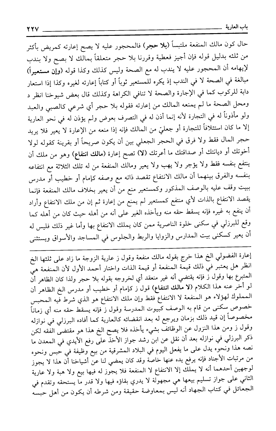 إعارة الفضولي الخ هذا خرج بقوله مالك منفعة وقول ز عارية الزوجة ما زاد على ثلثها الخ انظر هل يعتبر في ذلك قيمة المنفعة أو قيمة الذات واختار أحمد الأول لأن المنفعة هي المتبرع بها وقول ز فإنه يقتضي أنه غير منعقد أي لخروجه بقوله بلا حجر ولذا كان الظاهر أن لو أخر عنه هذا الكلام (لا مالك انتفاع) قول ز كإمام أو خطيب أو مدرس الخ الظاهر أن المملوك لهؤلاء هو المنفعة لا الانتفاع فقط وإن ملك الانتفاع هو الذي شرط فيه المحبس خصوص سكنى من قام به الوصف كبيوت المدرسة وقول ز فإنه يسقط حقه منه أي زمانًا مخصوصًا إن قيد ذلك بزمان ويرجع له بعد انقضائه كالعارية كما أفاده البرزلي في نوازله وقول ز ومن هذا النزول عن الوظائف بشيء يأخذه فلا يصح الخ هذا هو مقتضى الفقه لكن ذكر البرزلي في نوازله بعد أن نقل عن ابن رشد جواز الأخذ على رفع الأيدي في المعدن ما نصه هذا ونحوه يدل على ما يفعل اليوم في البلاد المشرقية من بيع وظيفة في حبس ونحوه من مرتبات الأجناد فإنه يرفع يده عنها خاصة وقد كان يمضي لنا عن أشياخنا أن هذا لا يجوز لوجهين أحدهما أنه لا يملك إلا الانتفاع لا المنفعة فلا يجوز له فيها بيع ولا هبة ولا عارية الثاني على جواز تسليم بيعها هي مجهولة لا يدري بقاؤه فيها ولا قدر ما يستحقه وتقدم في الجعائل في كتاب الجهاد أنه ليس بمعاوضة حقيقة ومن شرطه أن يكون من أهل حبسه