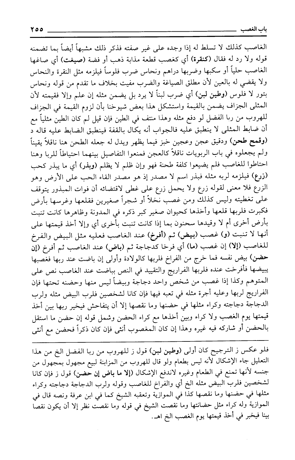 فلو عكس ز الترجيح كان أولى (وطين لبن) قول ز للهروب من ربا الفضل الخ من هذا التعليل جاء الإشكال لأنه ليس بطعام ولو قال للهروب من المزابنة لبيع مجهول بمجهول من جنسه لأنها تمنع في الطعام وغيره لاندفع الإشكال (إلا ما باض إن حضن) قول ز فإن كانا لشخصين فلرب البيض مثله الخ أي والفراخ للغاصب وقوله ولرب الدجاجة دجاجته وكراء مثلها في حضنها وما نقصها كذا في الموازية وتعقبه الشيخ كما في ابن عرفة ونصه قال في الموازية وله كراء مثل حضانتها وما نقصت الشيخ في قوله وما نقصت نظر إلا أن يكون نقصا بينا فيخبر في أخذ قيمتها يوم الغصب الخ اهـ.