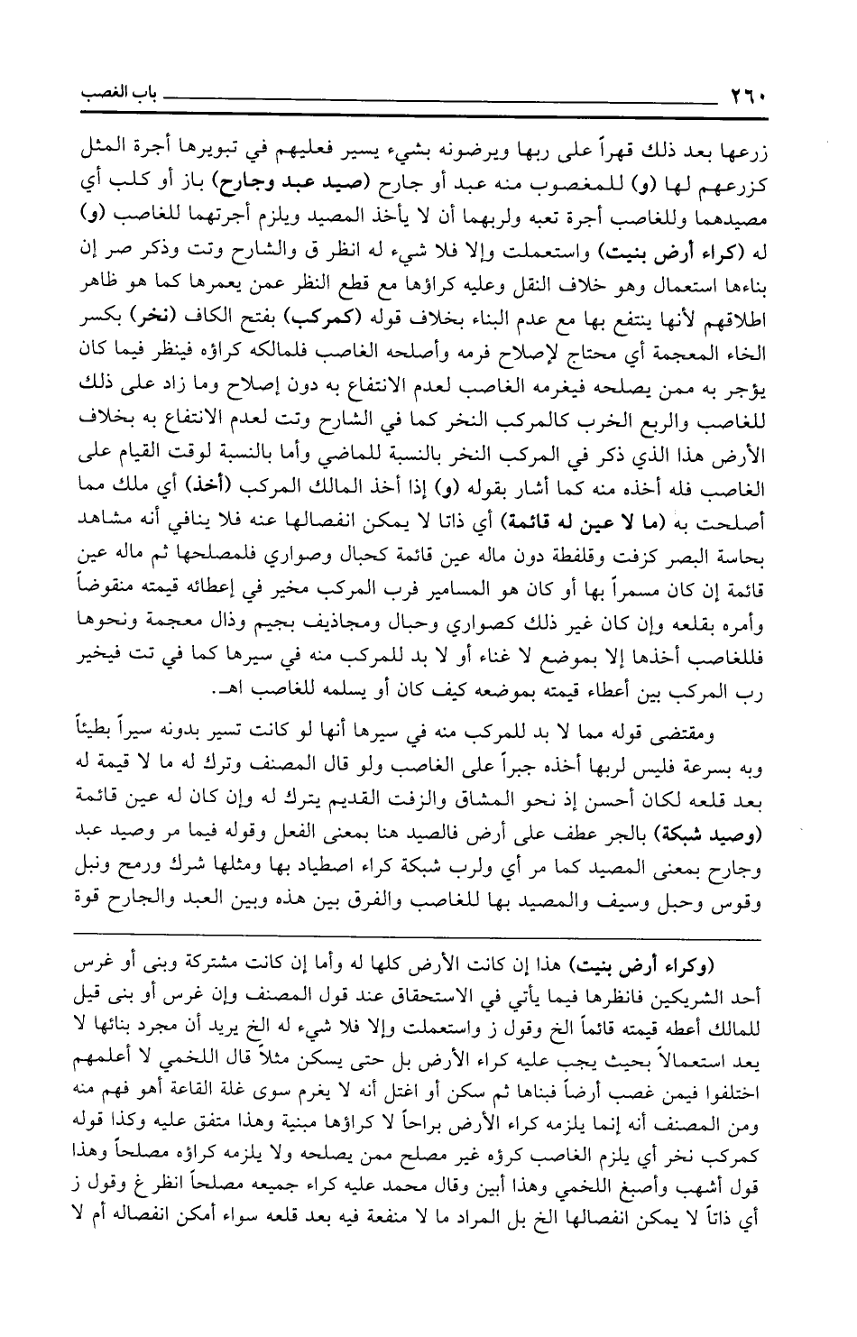 ومقتضى قوله مما لابد للمركب منه في سيرها أنها لو كانت تسير بدونه سيرًا بطيئًا وبه بسرعة فليس لربها أخذه جبرًا على الغاصب ولو قال المصنف وترك له ما لا قيمة له بعد قلعه لكان أحسن إذ نحو المشاق والزفت القديم يترك له وإن كان له عين قائمة (وصيد شبكة) بالجر عطف على أرض فالصيد هنا بمعنى الفعل وقوله فيما مر وصيد عبد وجارح بمعنى المصيد كما مر أي ولرب شبكة كراء اصطياد بها ومثلها شرك ورمح ونبل وقوس وحبل وسيف والمصيد بها للغاصب والفرق بين هذه وبين العبد والجارح قوة
