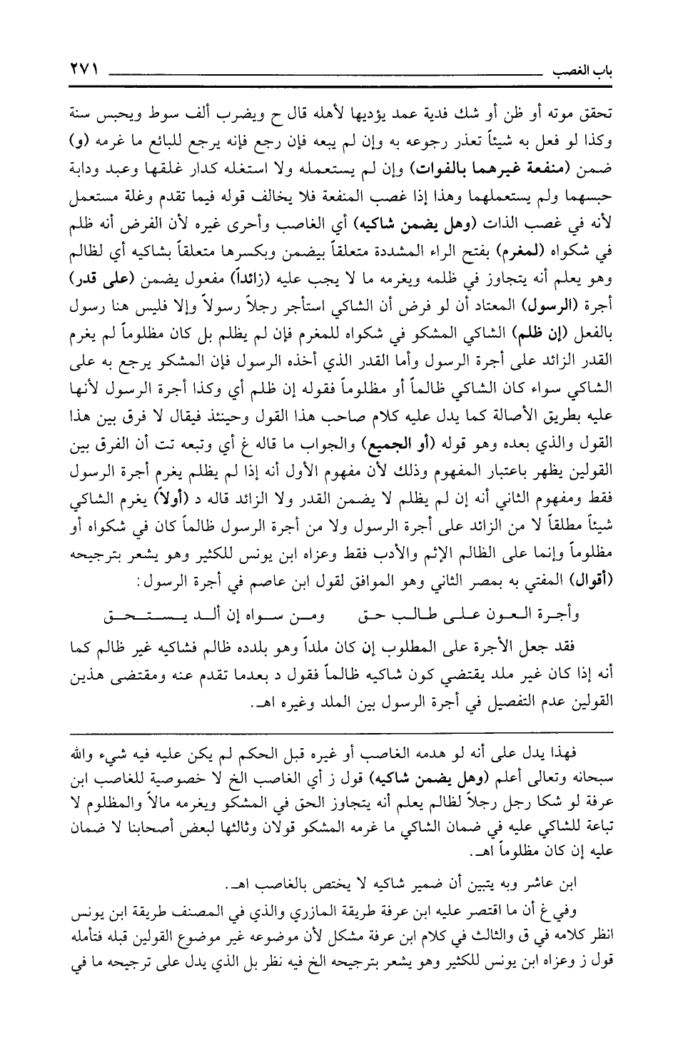 ابن عاشر وبه يتبين أن ضمير شاكيه لا يختص بالغاصب اهـ.
