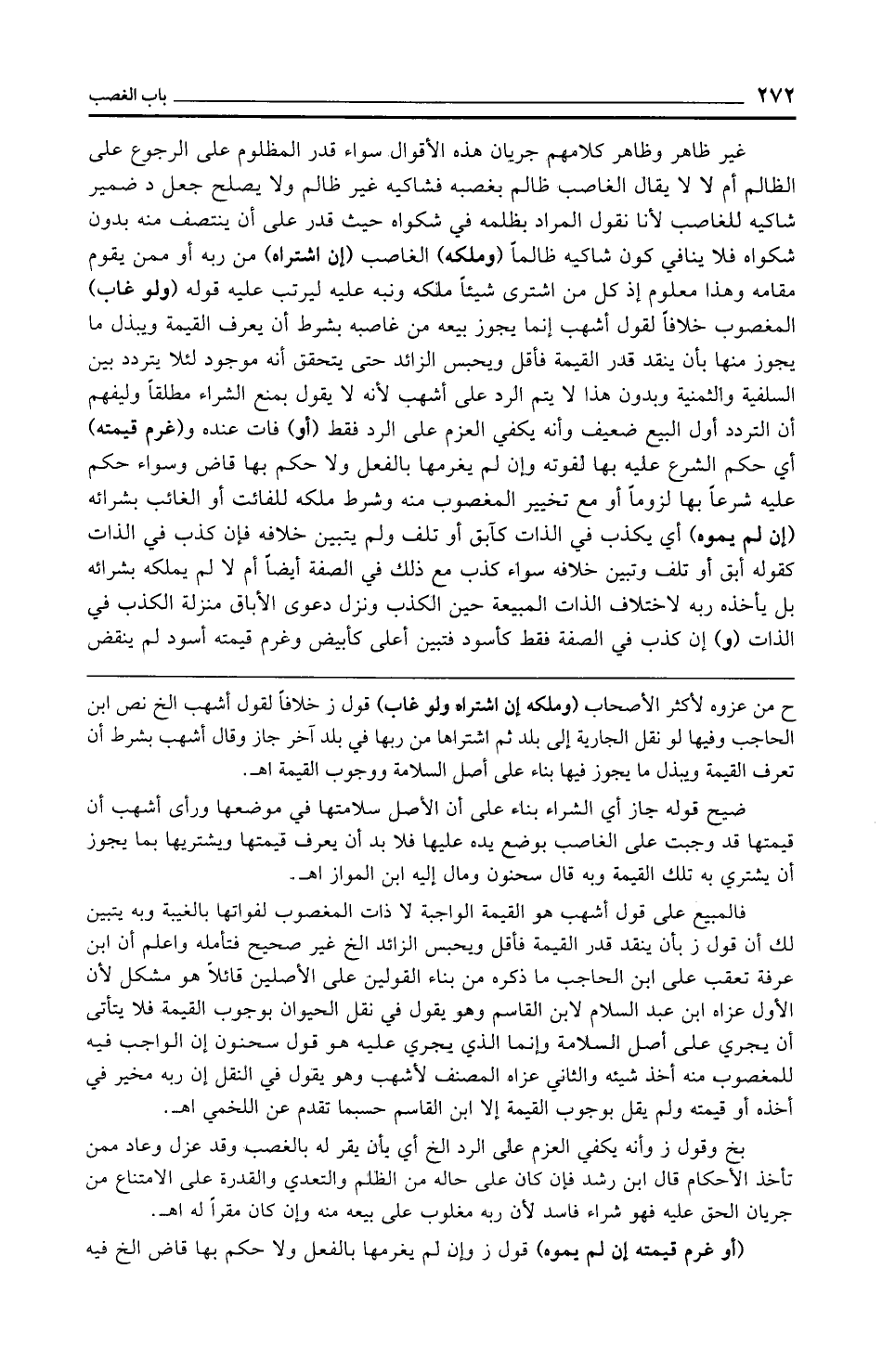بخ وقول ز وأنه يكفي العزم على الرد الخ أي في أن يقر له بالغصب وقد عزل وعاد ممن تأخذ الأحكام قال ابن رشد فإن كان على حاله من الظلم والتعدي والقدرة على الامتناع من جريان الحق عليه فهو شراء فاسد لأن ربه مغلوب على بيعه منه وإن كان مقرًا له اهـ.