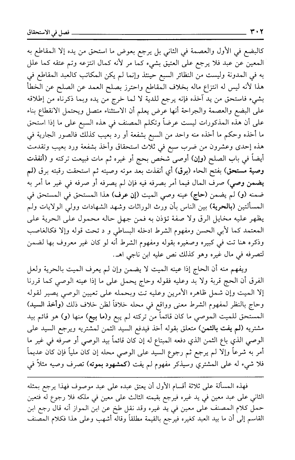 كالبضع في الأول والعصمة في الثاني بل يرجع بعوض ما استحق من يده إلا المقاطع به المعين عن عبد فلا يرجع على العتيق بشيء كما مر لأنه كمال انتزعه وتم عتقه كما علل به في المدونة وليست من النظائر السبع حينئذ وإنما لم يكن المكاتب كالعبد المقاطع في هذا لأنه ليس له انتزاع ماله بخلاف المقاطع واحترز بصلح العمد عن الصلح عن الخطأ بشيء فاستحق من يد آخذه فإنه يرجع للدية لا لما خرج من يده وبما ذكرناه من إطلاقه على البضع والعصمة والجراحة أنها عرض يعلم أن الاستثناء متصل ويحتمل الانقطاع بتاء على أن هذه المذكورات ليست عرضًا وتكلم المصنف في هذه السبع على ما إذا استحق ما أخذه وحكم ما أخذه منه واحد من السبع بشفعة أو رد بعيب كذلك فالصور الجارية في هذه إحدى وعشرون من ضرب سبع في ثلاث استحقاق وأخذ بشفعة ورد بعيب وتقدمت أيضًا في باب الصلح (وإن) أوصى شخص بحج أو غيره ثم مات فبيعت تركته و (أنفذت وصية مستحق) بفتح الحاء (برق) أي أنفذت بعد موته وصيته ثم استحقت رقبته برق (لم يضمن وصي) صرف المال فيما أمر بصرفه فيه فإن لم يصرفه أو صرفه في غير ما أمر به ضمنه (و) لم يضمن (حاج) عينه وصي الميت (إن عرف) هذا المستحق في المستحق في المسألتين (بالحرية) بين الناس بأن ورث الوراثات وشهد الشهادات وولي الولايات ولم يظهر عليه مخايل الرق ولا صفة تؤذن به فمن جهل حاله محمول على الحرية على المعتمد كما لأبي الحسن ومفهوم الشرط أدخله البساطي ود تحت قوله وإلا فكالغاصب وذكره هنا تت في كبيره وصغيره بقوله ومفهوم الشرط أنه لو كان غير معروف بها لضمن لتصرفه في مال غيره وهو كذلك نص عليه ابن ناجي اهـ.