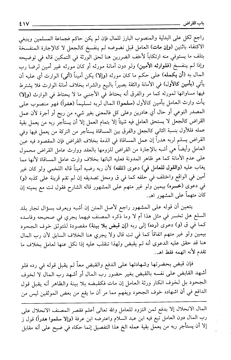 المال الانحلال إلا بدفع ثمن التزود للعامل والله تعالى أعلم فقصر المصنف الانحلال على رب المال دون العامل تبع فيه ابن عبد السلام واعترضه ابن عرفة (وإلا سلموا هدرًا) قول ز إلا أن يستأجر ربه من يعمل بقية عمله الخ هذا التفصيل إنما حكاه في ضيح على أنه مقابل
