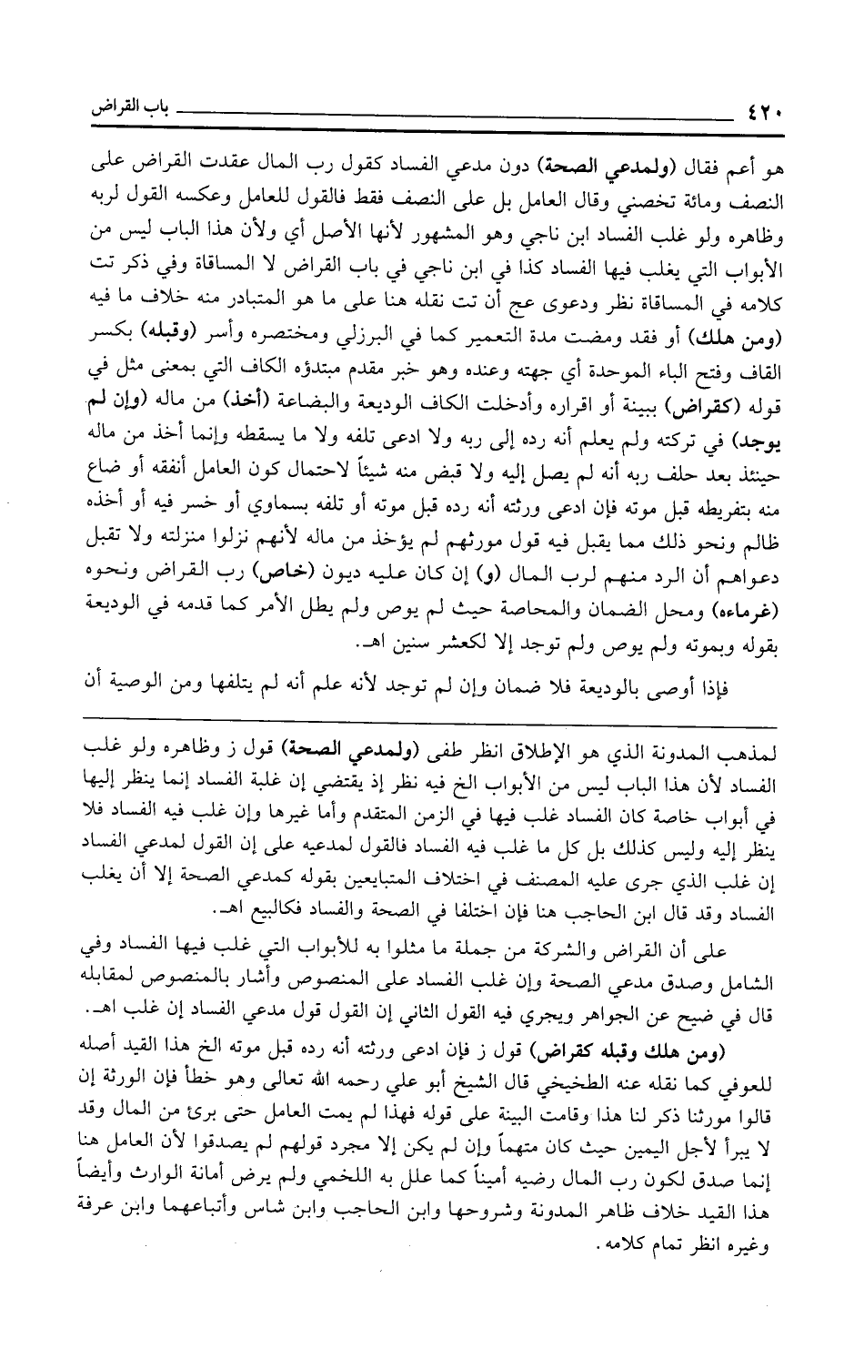 (ومن هلك وقبله كقراض) قول ز فإن ادعى ورثته أنه رده قبل موته الخ هذا القيد أصله للعوفي كما نقله عنه الطخيخي قال الشيخ أبو علي رحمه الله تعالى وهو خطأ فإن الورثة إن قالوا مورثنا ذكر لنا هذا وقامت البينة على قوله فهذا لم يمت العامل حتى برئ من المال وقد لا يبرأ لأجل اليمين حيث كان متهمًا وإن لم يكن إلا مجرد قولهم لم يصدقوا لأن العامل هنا إنما صدق لكون رب المال رضيه أمينًا كما علل به اللخمي ولم يرض أمانة الوارث وأيضًا هذا القيد خلاف ظاهر المدونة وشروحها وابن الحاجب وابن شاس وأتباعهما وابن عرفة وغيره انظر تمام كلامه.