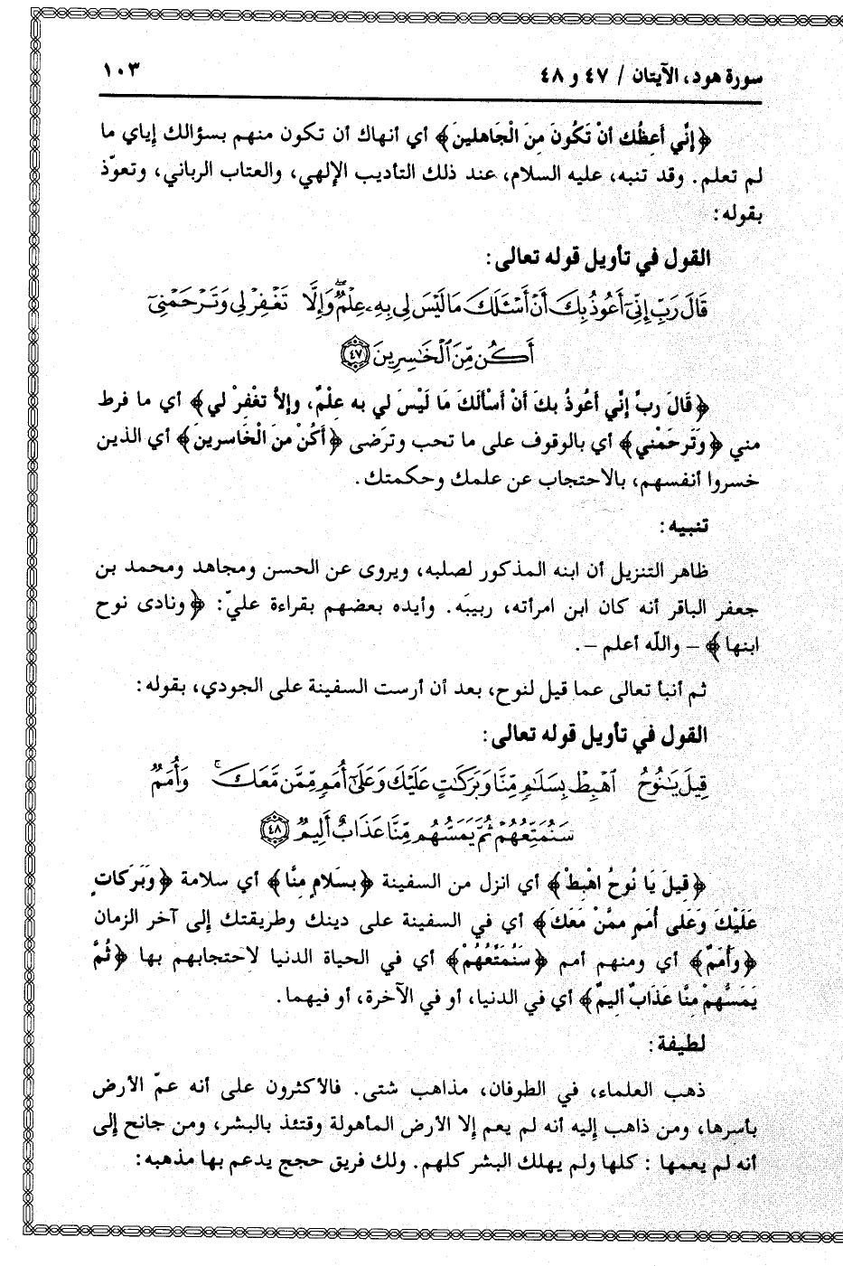 قالَ رَبِّ إِنِّي أَعُوذُ بِكَ أَنْ أَسْئَلَكَ ما لَيْسَ لِي بِهِ عِلْمٌ وَإِلاَّ تَغْفِرْ لِي وَتَرْحَمْنِي أَكُنْ مِنَ الْخاسِرِينَ (47)
