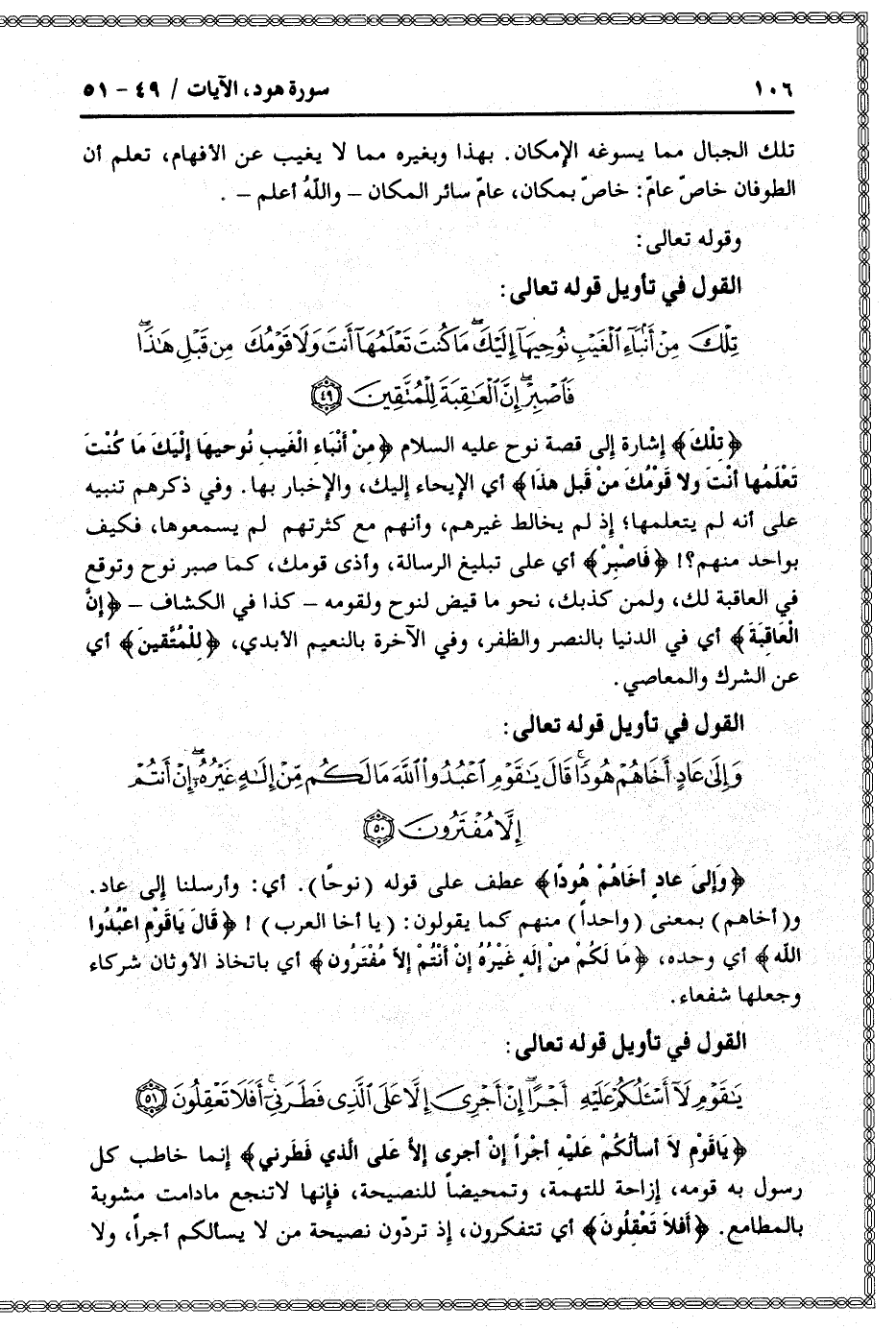 تِلْكَ مِنْ أَنْباءِ الْغَيْبِ نُوحِيها إِلَيْكَ ما كُنْتَ تَعْلَمُها أَنْتَ وَلا قَوْمُكَ مِنْ قَبْلِ هذا فَاصْبِرْ إِنَّ الْعاقِبَةَ لِلْمُتَّقِينَ (49)
