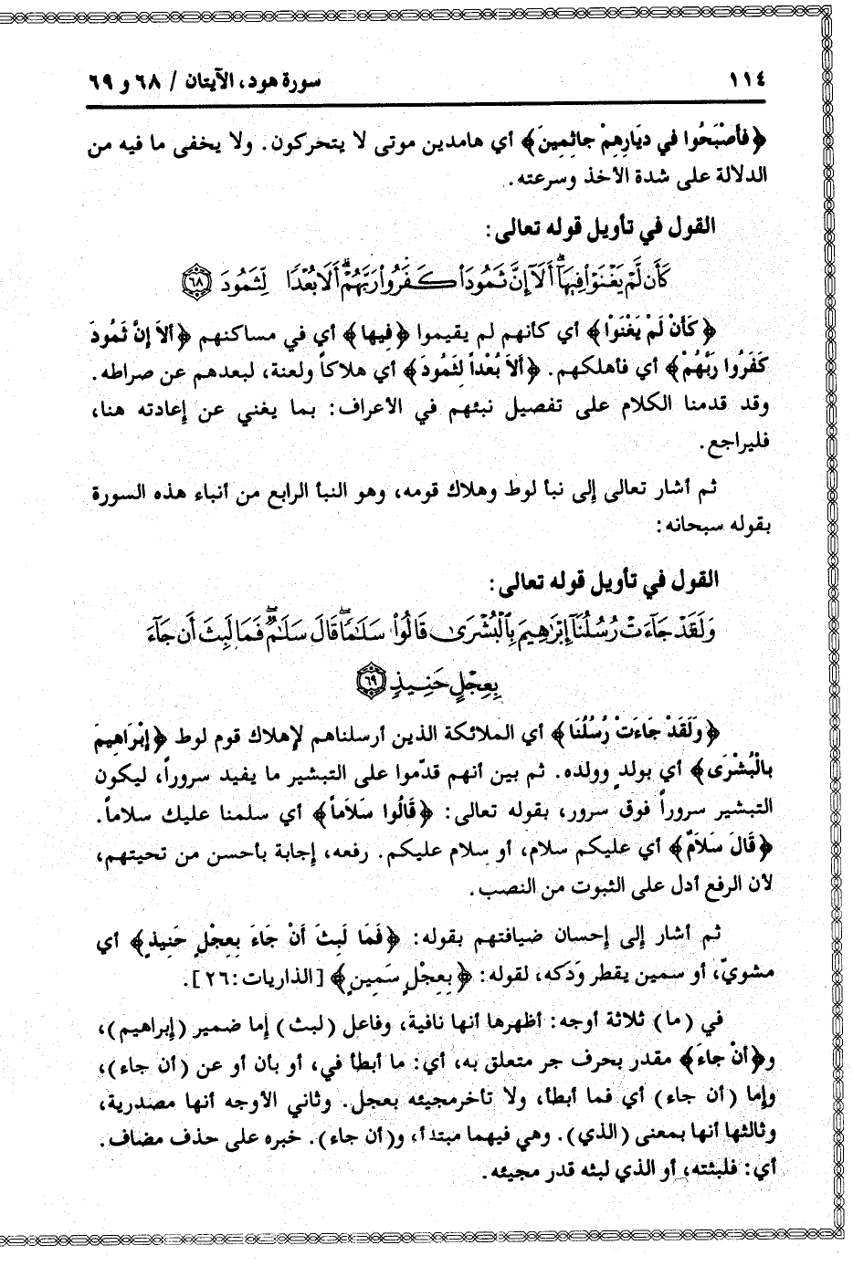 وَلَقَدْ جاءَتْ رُسُلُنا إِبْراهِيمَ بِالْبُشْرى قالُوا سَلاماً قالَ سَلامٌ فَما لَبِثَ أَنْ جاءَ بِعِجْلٍ حَنِيذٍ (69)