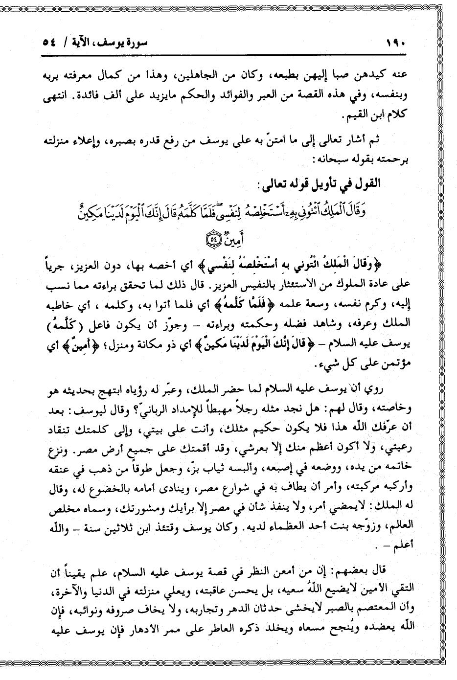 وَقالَ الْمَلِكُ ائْتُونِي بِهِ أَسْتَخْلِصْهُ لِنَفْسِي فَلَمَّا كَلَّمَهُ قالَ إِنَّكَ الْيَوْمَ لَدَيْنا مَكِينٌ أَمِينٌ (54)