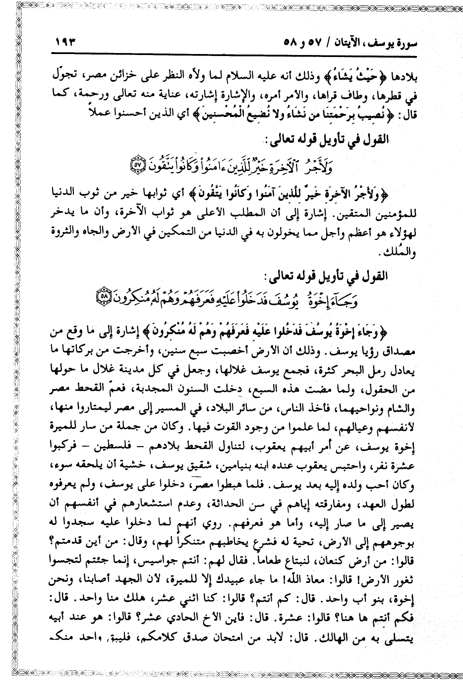 القول في تأويل قوله تعالى: [سورة يوسف (12) : آية 58]