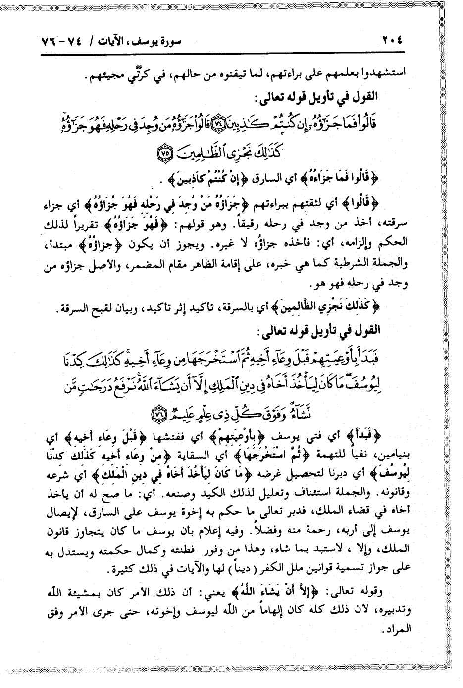 قالُوا فَما جَزاؤُهُ إِنْ كُنْتُمْ كاذِبِينَ (74) قالُوا جَزاؤُهُ مَنْ وُجِدَ فِي رَحْلِهِ فَهُوَ جَزاؤُهُ كَذلِكَ نَجْزِي الظَّالِمِينَ (75)