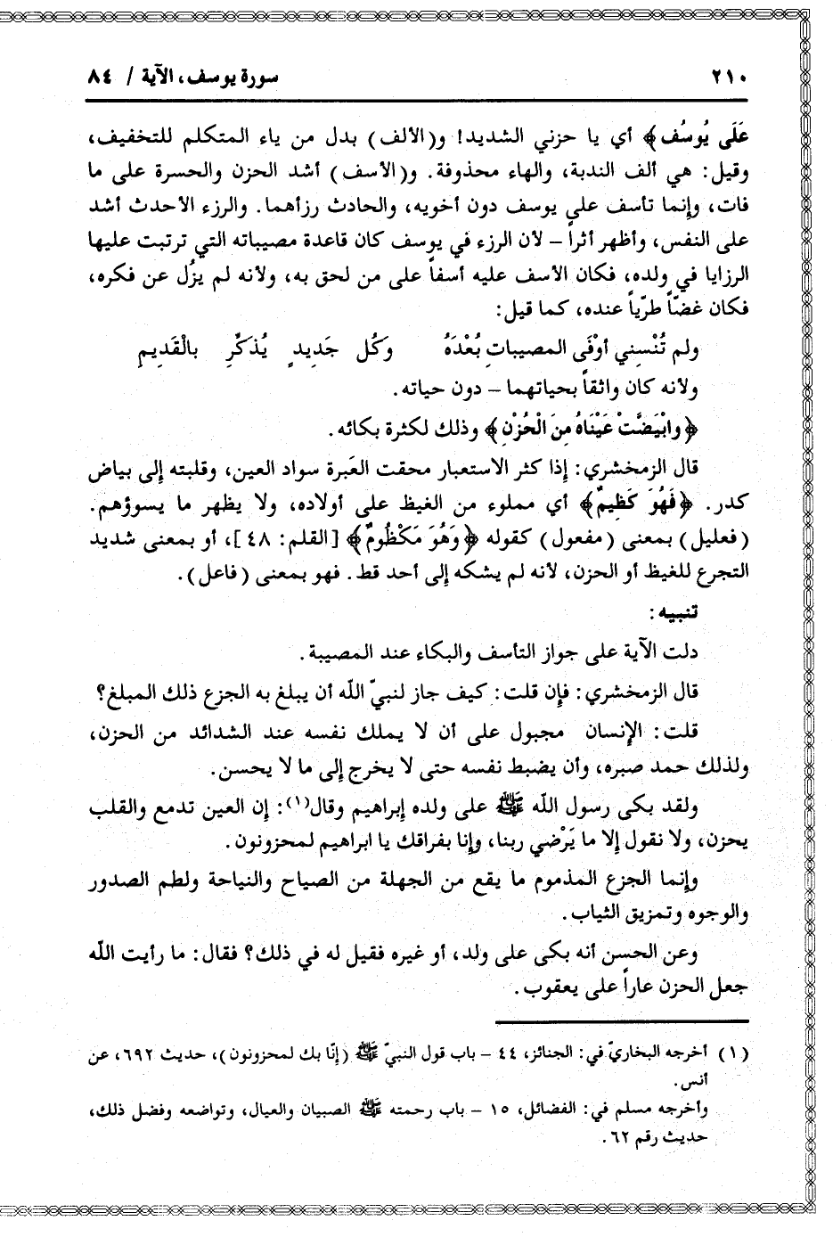 دلت الآية على جواز التأسف والبكاء عند المصيبة.