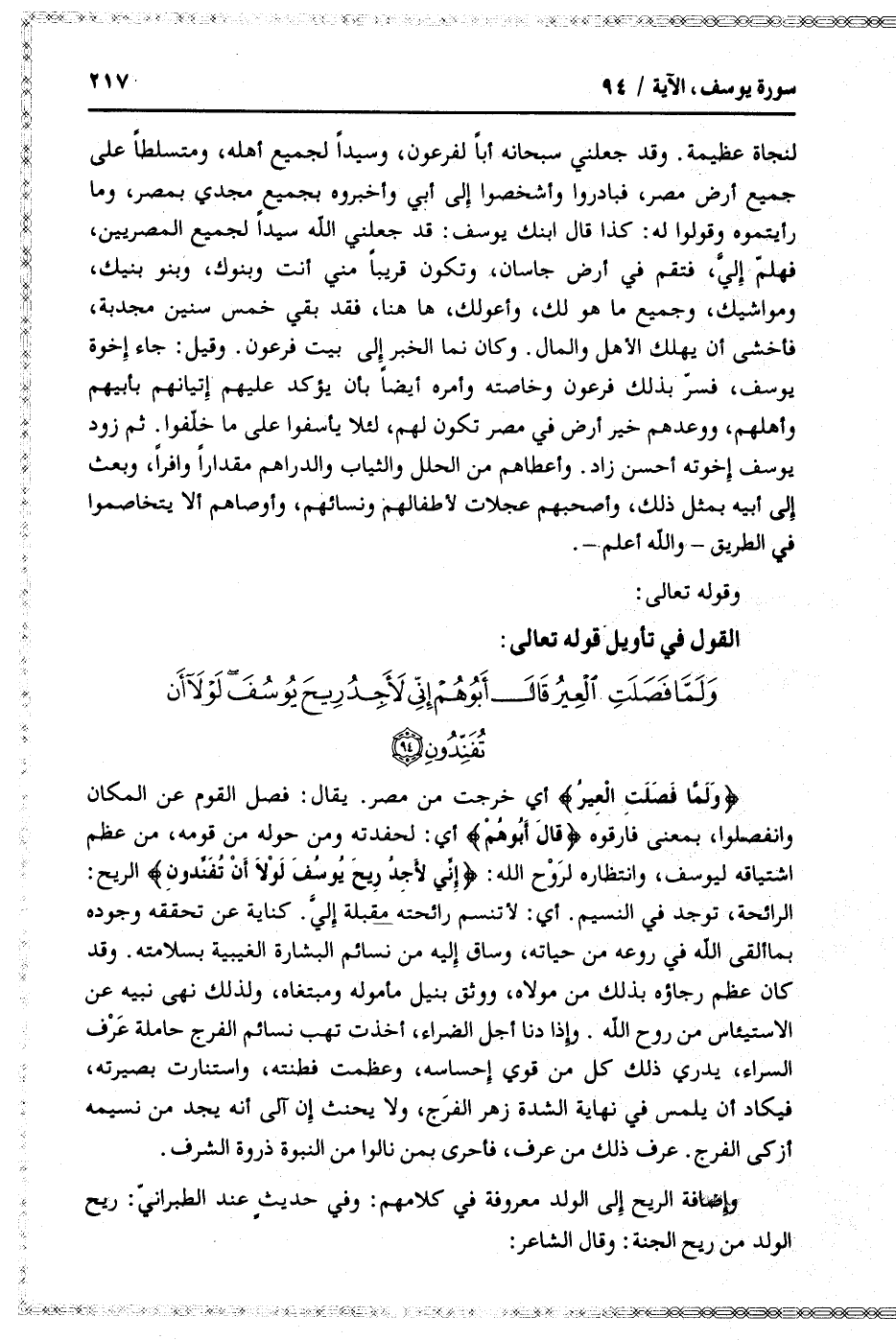 القول في تأويل قوله تعالى: [سورة يوسف (12) : آية 94]