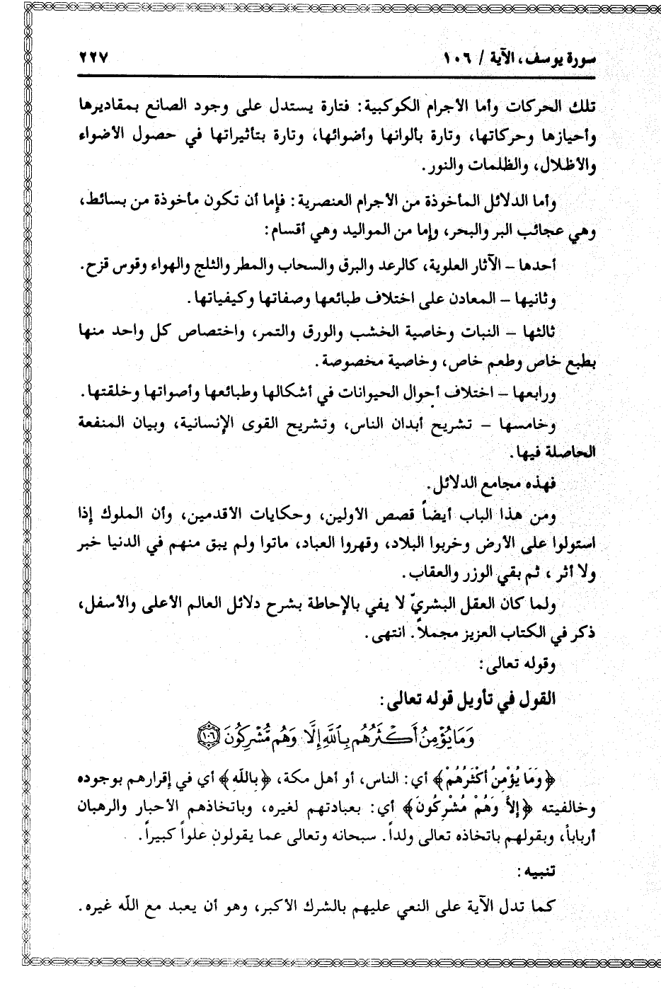 وَما يُؤْمِنُ أَكْثَرُهُمْ بِاللَّهِ إِلاَّ وَهُمْ مُشْرِكُونَ (106)
