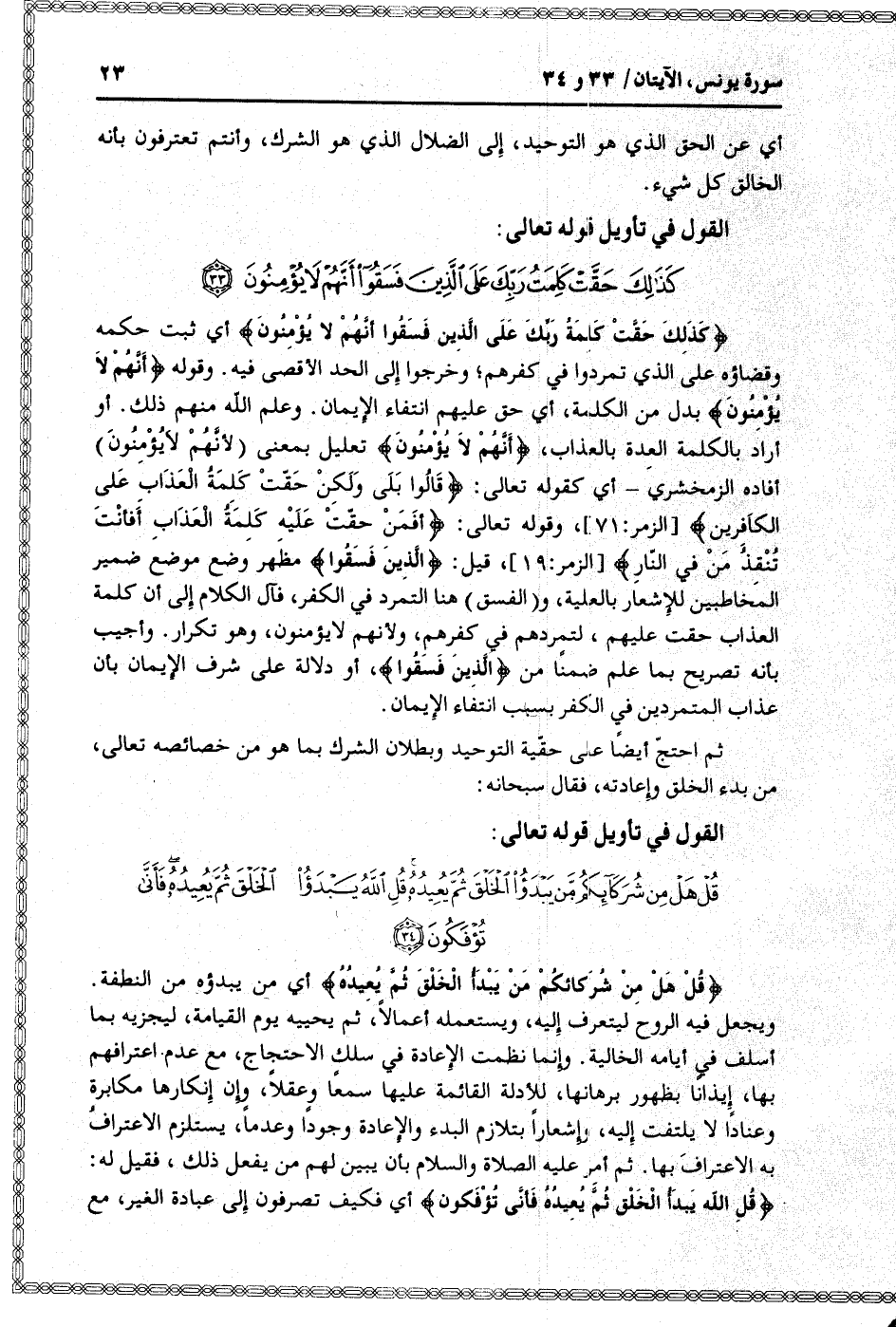 القول في تأويل قوله تعالى: [سورة يونس (10) : آية 33]