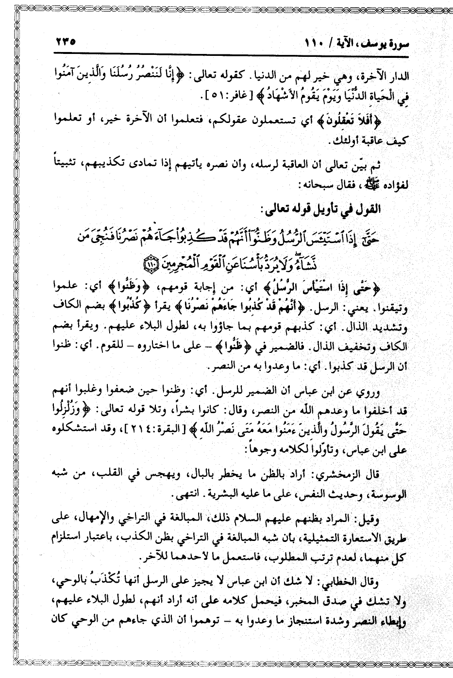 القول في تأويل قوله تعالى: [سورة يوسف (12) : آية 110]