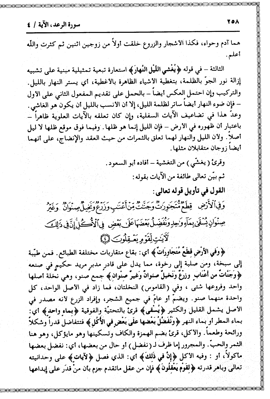 القول في تأويل قوله تعالى: [سورة الرعد (13) : آية 4]