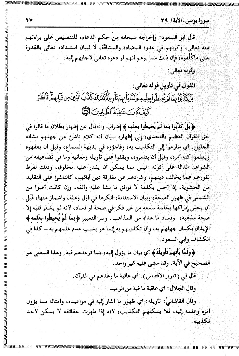 القول في تأويل قوله تعالى: [سورة يونس (10) : آية 39]