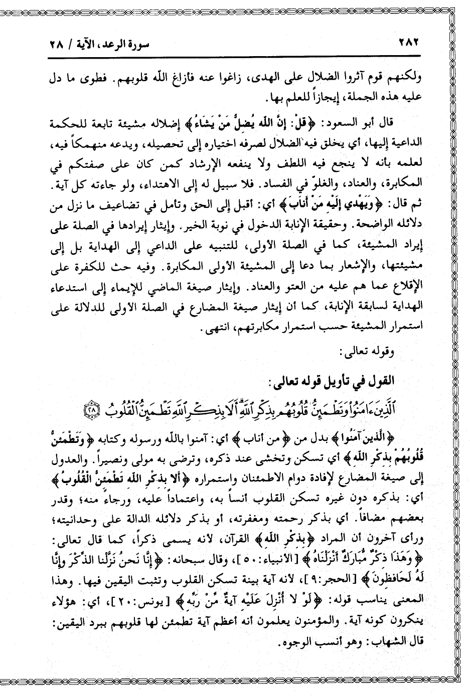 القول في تأويل قوله تعالى: [سورة الرعد (13) : آية 28]