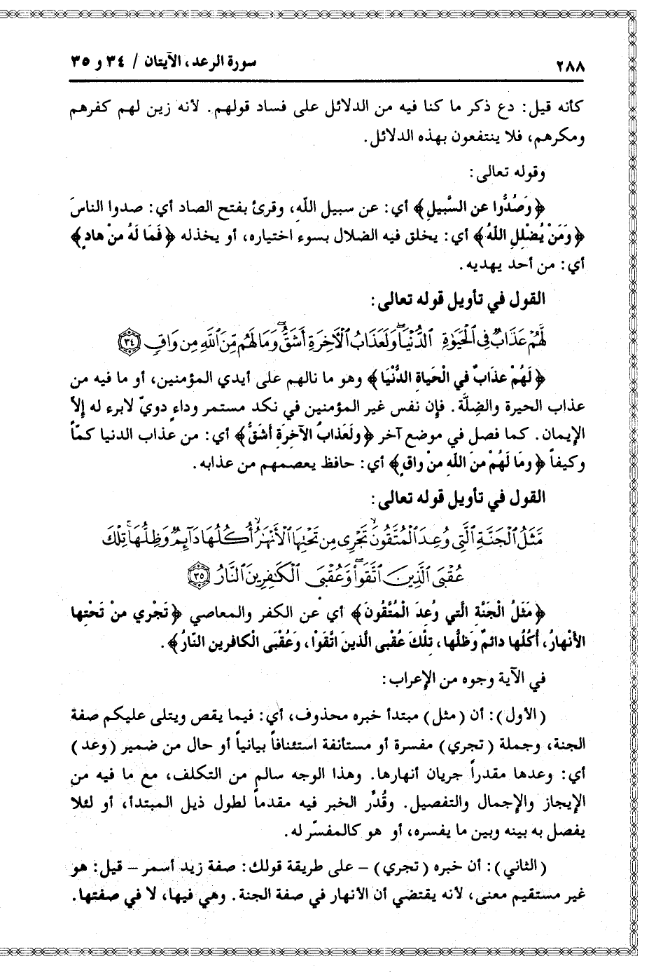 القول في تأويل قوله تعالى: [سورة الرعد (13) : آية 35]