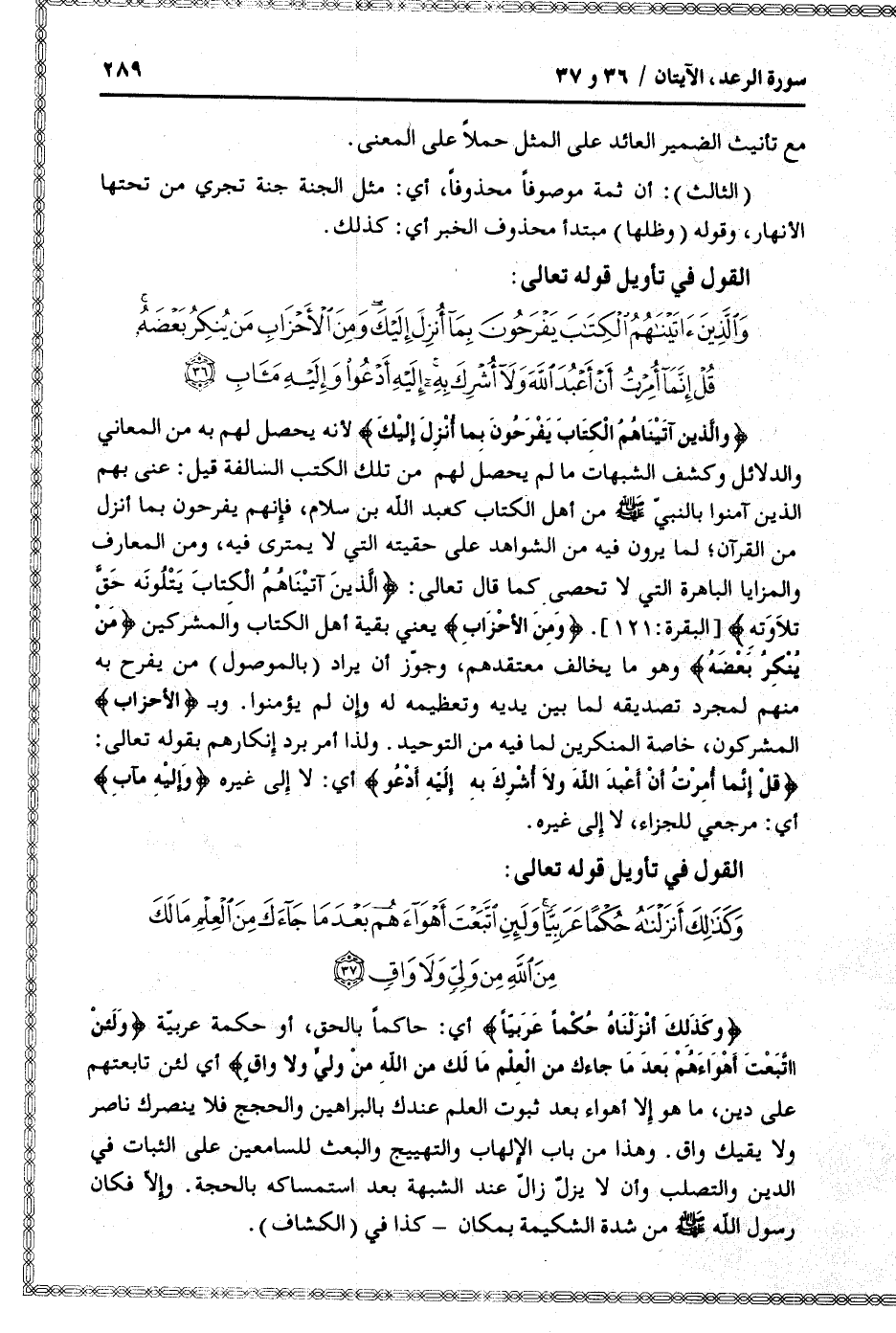 القول في تأويل قوله تعالى: [سورة الرعد (13) : آية 36]